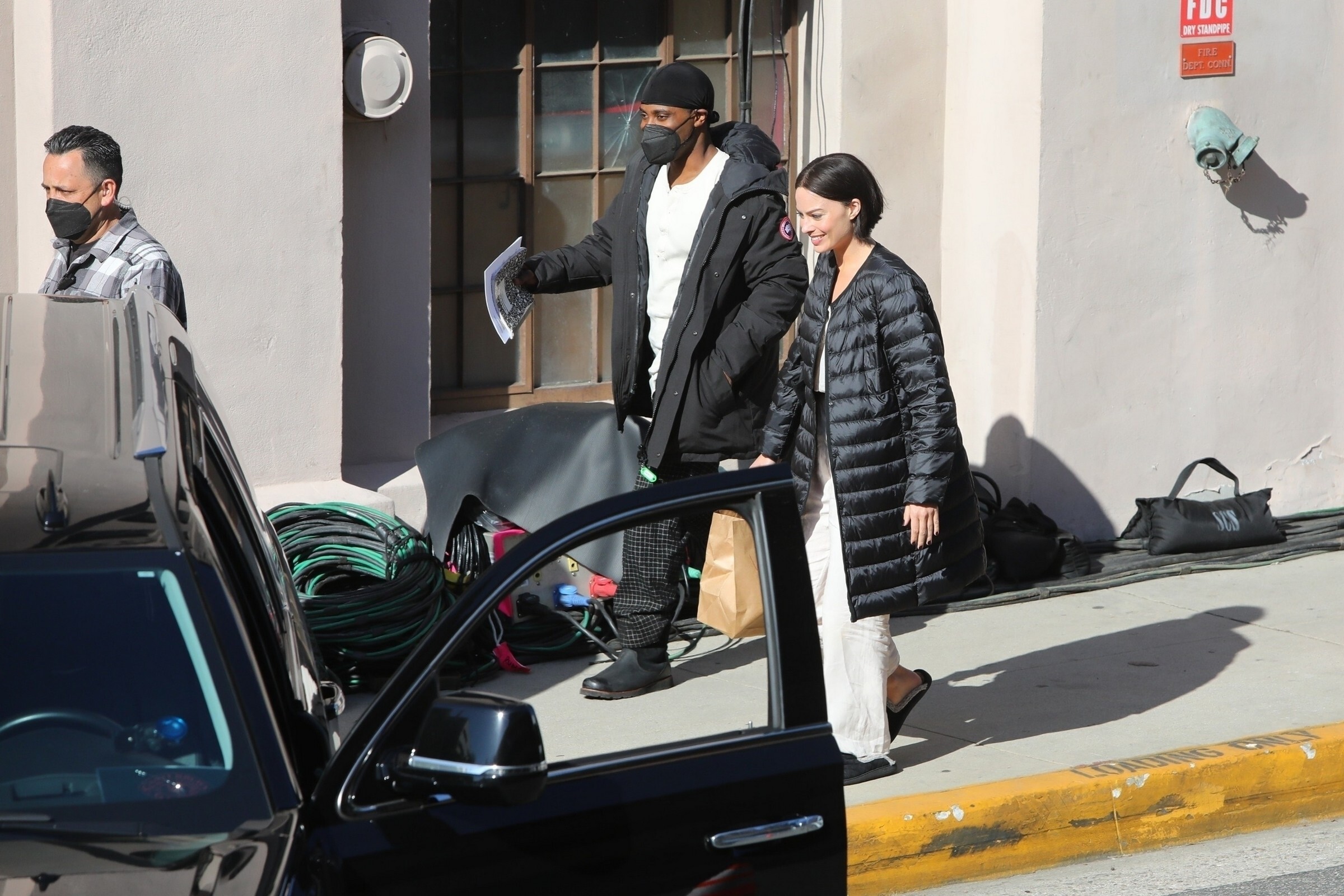 Margot Robbie, Christian Bale and John David Washington were seen filming a scene for director David O. Russell's untitled project in Los Angeles