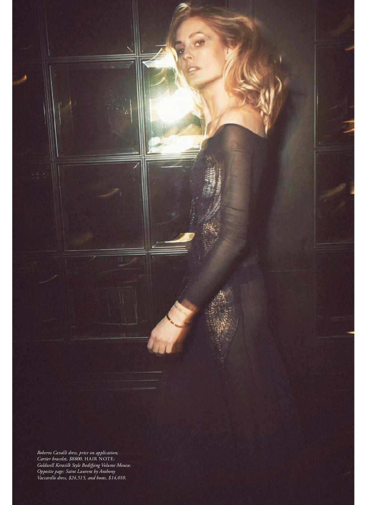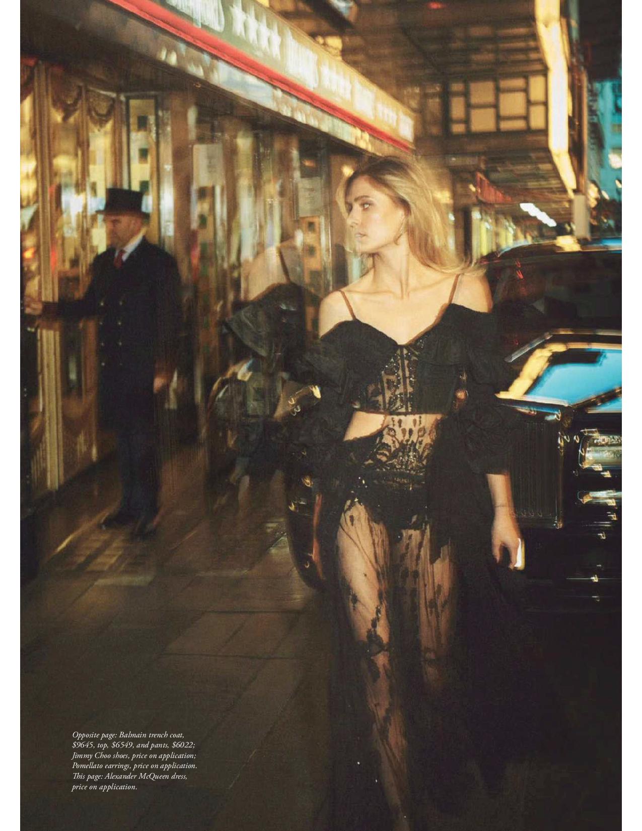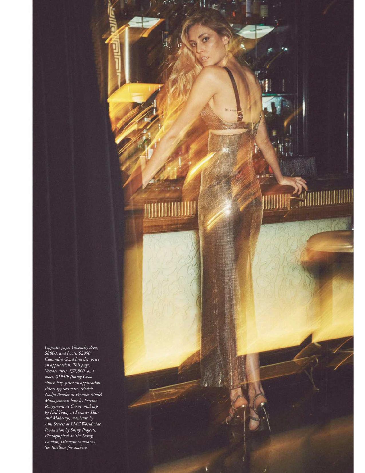 Nadja Bender is a vision on the November 2017 cover of Harper’s Bazaar Spain. Photographed by Guy Aroch, the blonde beauty poses in a sheer cape and bikini set from Chanel. Inside the magazine, Nadja models glamorous nighttime styles. Fashion editor Beatriz Moreno de la Cova dresses the Danish stunner in designs from the likes of Gucci, Emilio Pucci and Valentino.