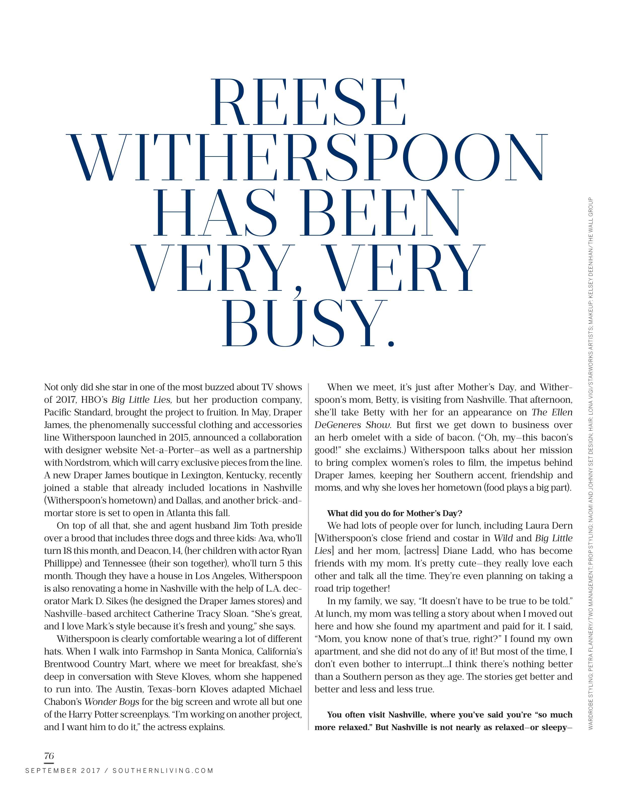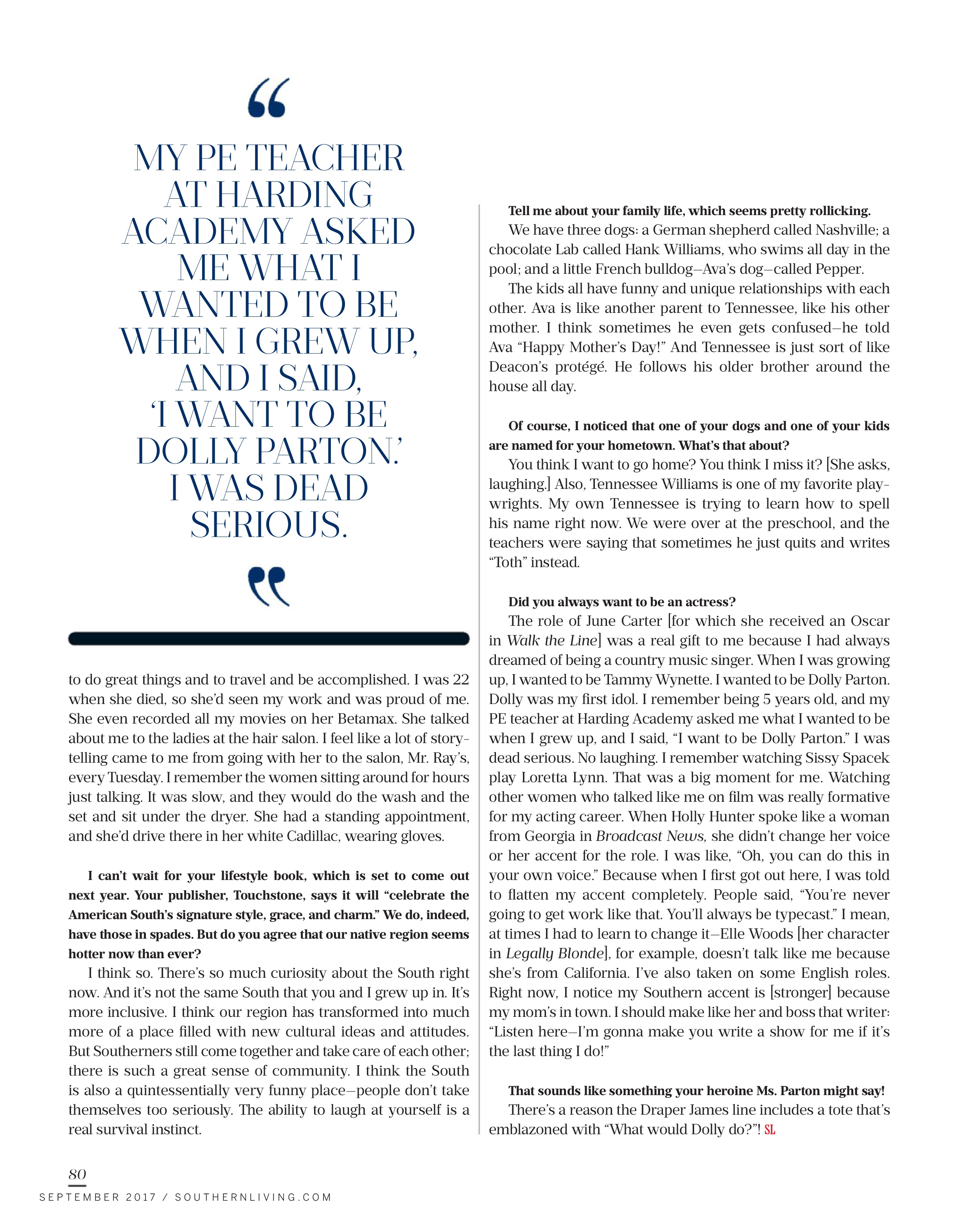 Southern Living Magazine, Sept 2017