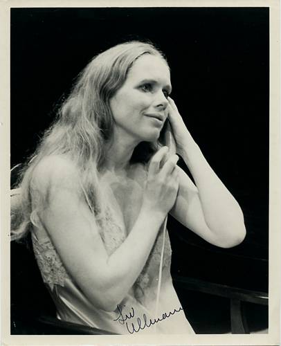 Liv Johanne Ullmann (born 16 December 1938) is a Norwegian actress and film director, as well as one of the "muses" of the Swedish director Ingmar Bergman. A winner of the Golden Globe, Ullmann has also been nominated for the Palme d'Or, two times for the Academy Award, and a BAFTA Award.