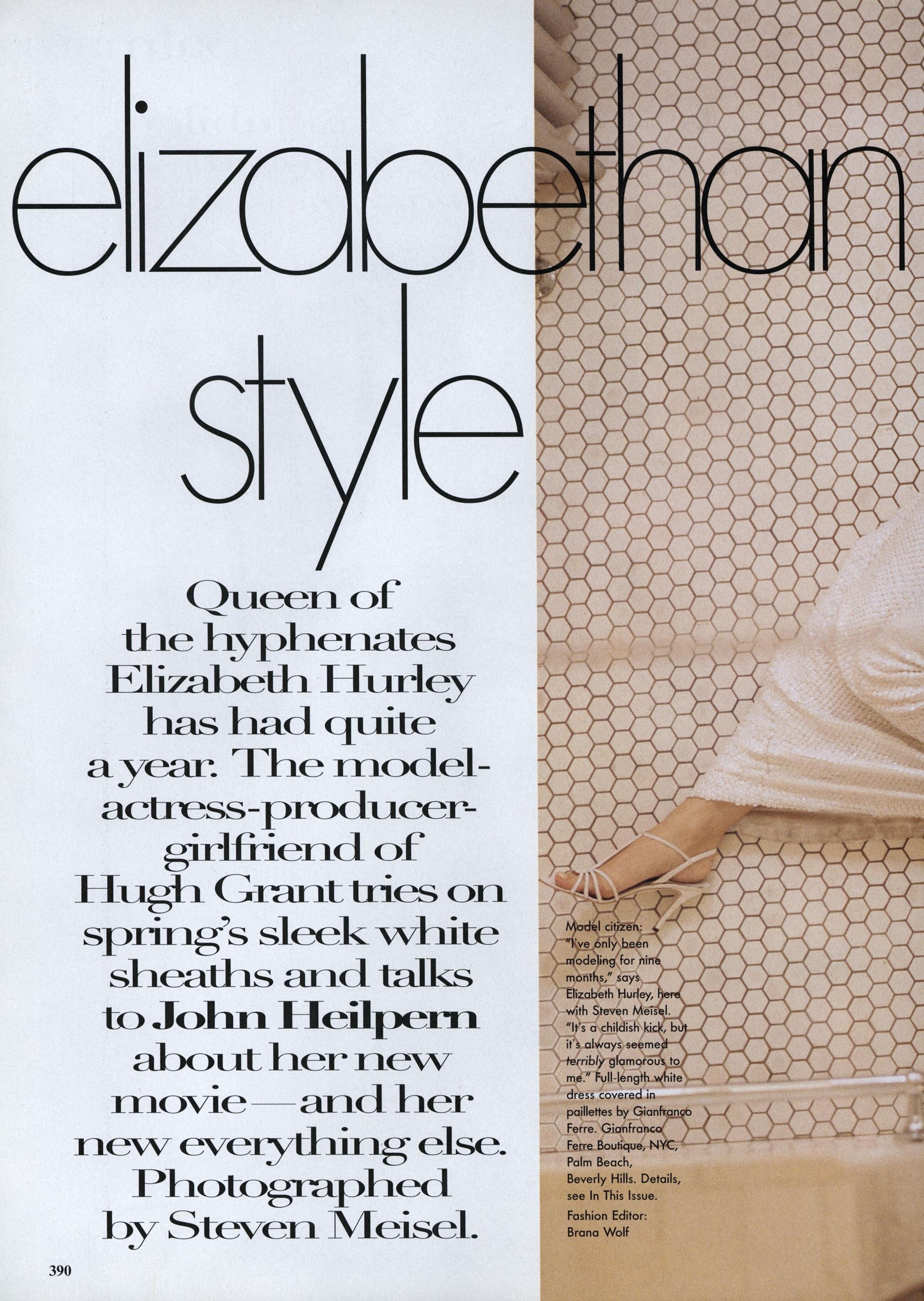 "Hasta la Vista, Arnold" Models/Stars: Elizabeth Hurley, Minnie Driver, Michelle Yeoh & Sigourney Weaver Photographer: Helmut Newton Sittings Editor: Phyllis Posnick Hair: Alan D'Angerio Makeup: Fulvia Farolfi