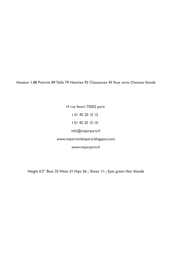 Agencies: Unsigned Management (London), Fashion (Milan), Major (Paris)