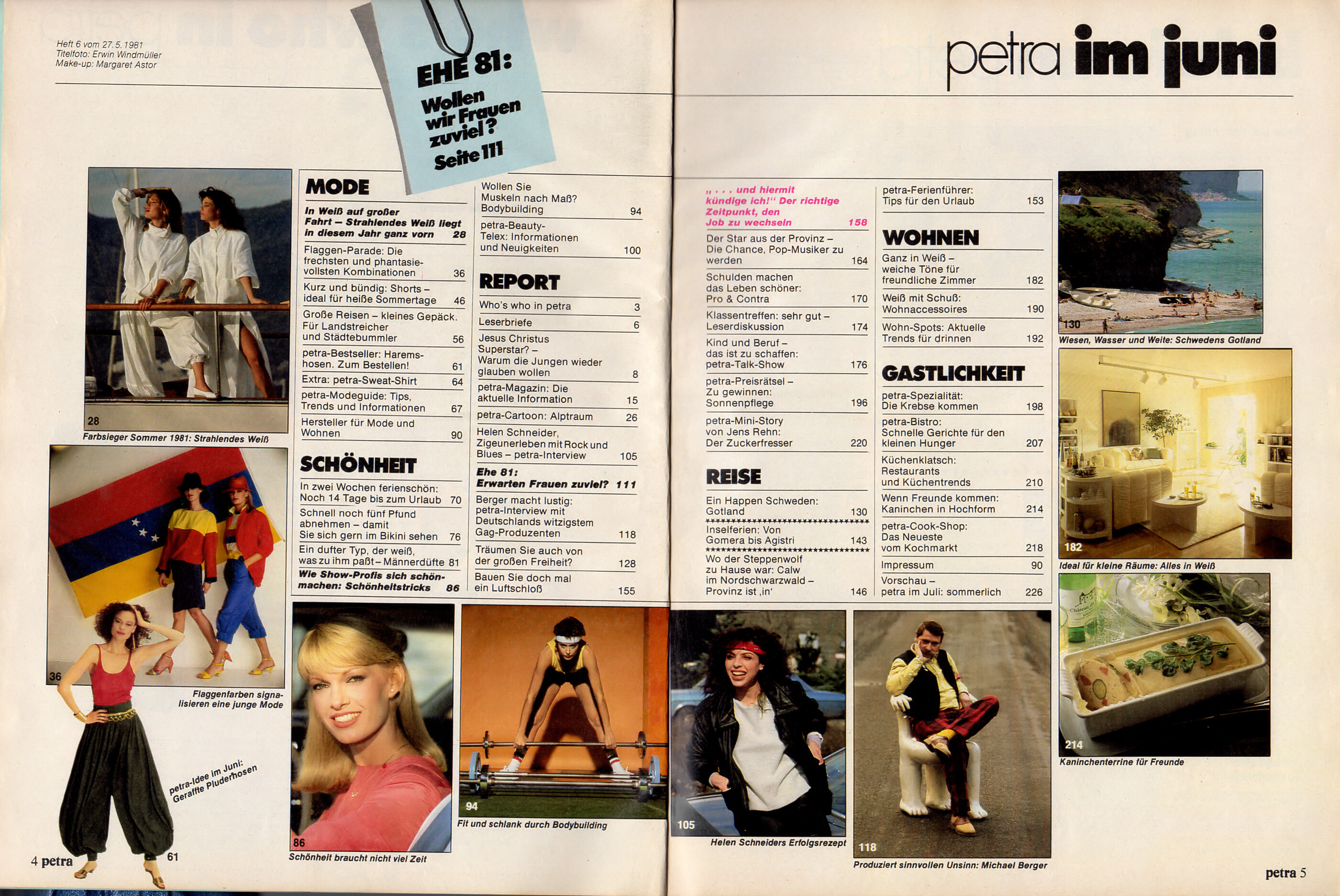 contents + "WEISS AUF GROSSER FAHRT" - petra Germany June 1981 (27. May 1981) by Albert Watson - also showing Andrea Malkiewicz, Cindy Garvey