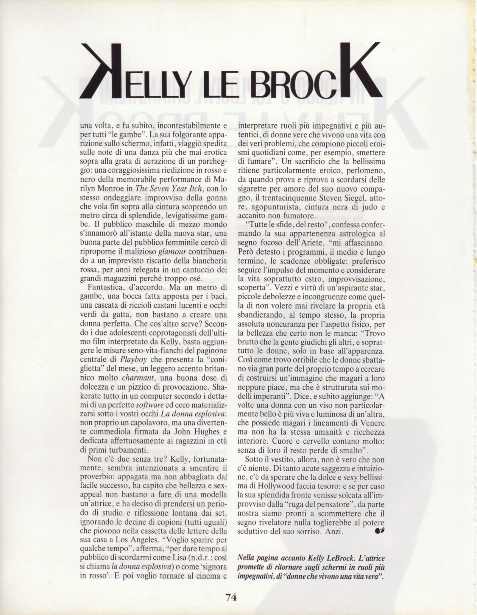 contents + "IN ROSSO O ESPLOSIVA, CHIAMATEMI KELLY LE BROCK" - IL PIACERE Italy October 1986 by Rosza - also showing Hanna Schygulla