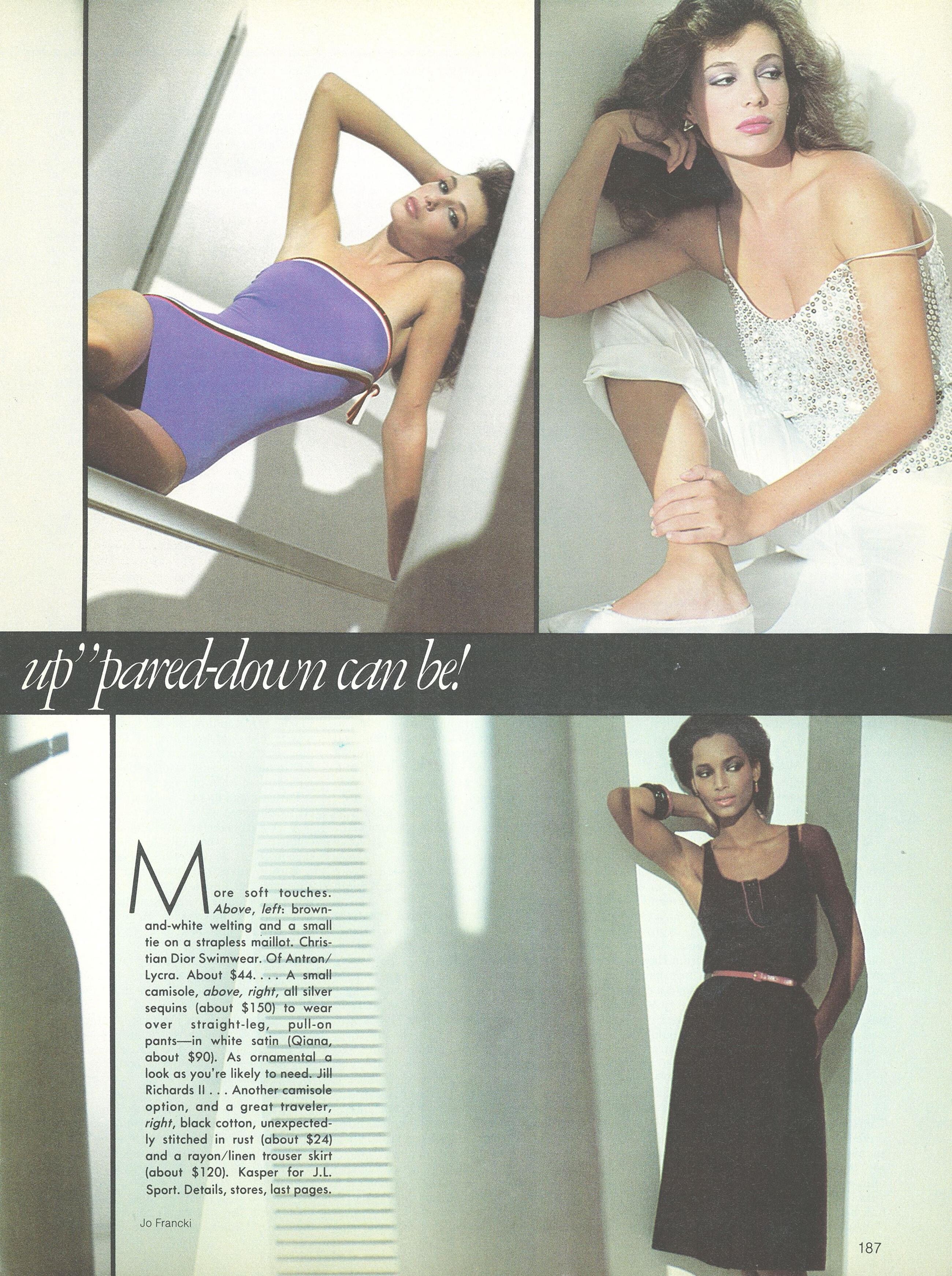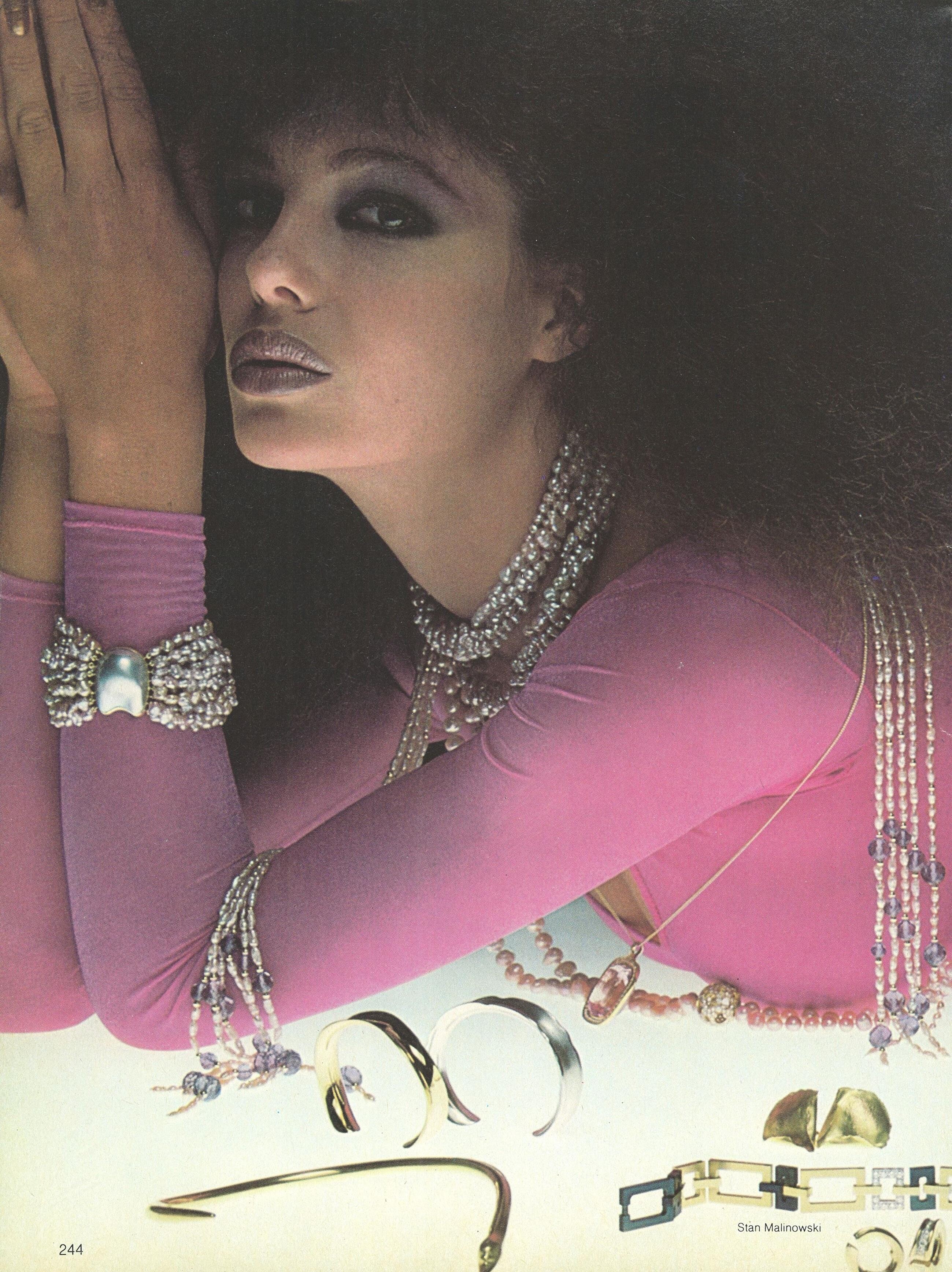Gianni Versace advertisement - VOGUE Germany April 1983 - also showing Bonnie Berman, Andie MacDowell, Kim Alexis, Janice Dickinson, Iman
