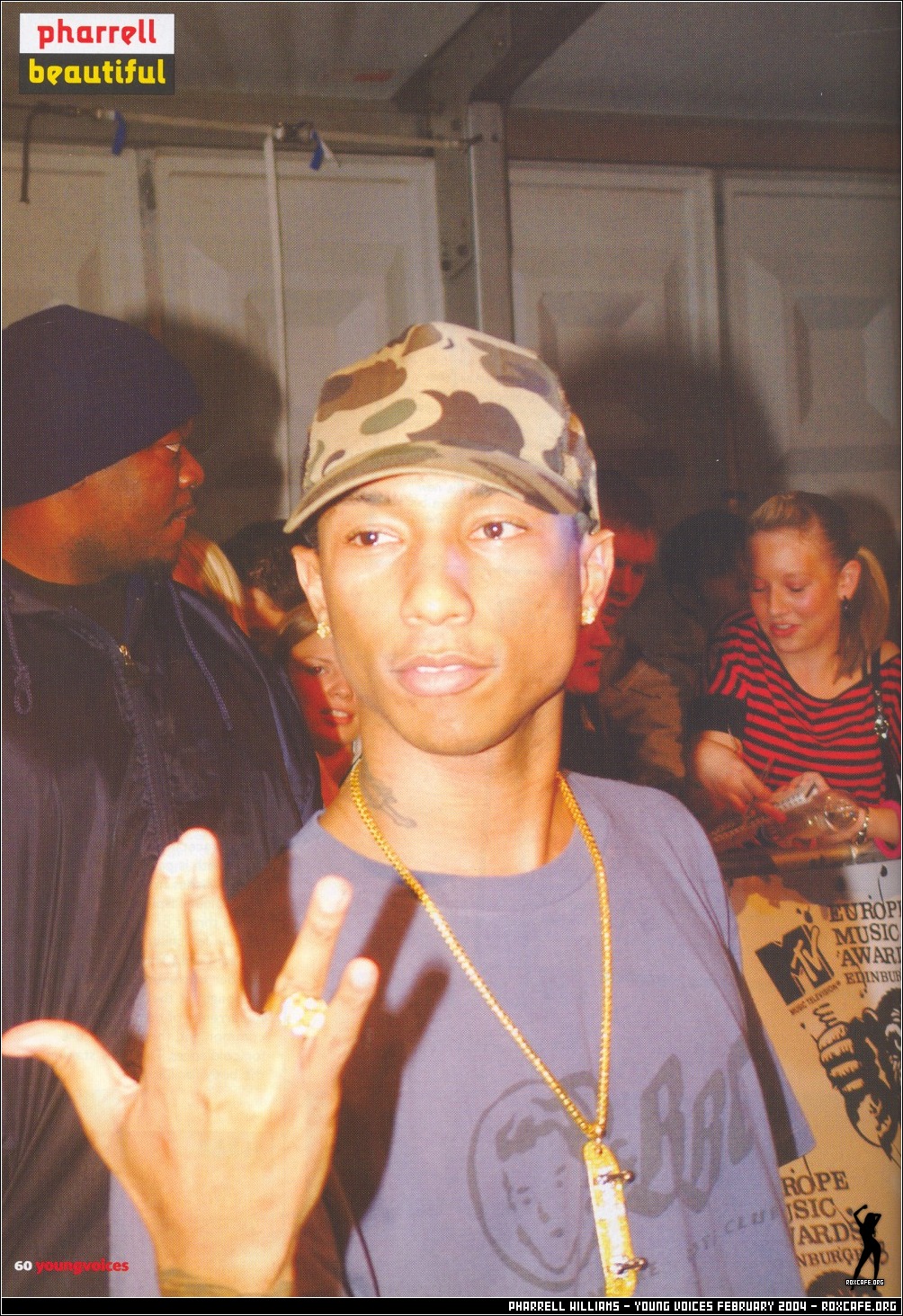 Pharrell Williams aka Skateboard P (born April 5, 1973 in Virginia Beach, Virginia) is one half of the primarily hip hop music production and songwriting duo, The Neptunes (with Chad Hugo) as well as rap/rock group N.E.R.D. with Hugo and Shae Haley. As part of The Neptunes Pharrell has produced numerous hit singles for megastars such as Mariah Carey, Britney Spears, Janet Jackson, Snoop Dogg, Gwen Stefani, Nelly, Justin Timberlake, Mystikal, Jay-Z, *NSYNC, and others.