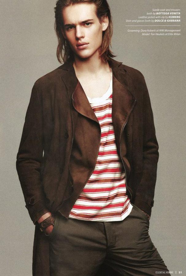 It’s easy to see the appeal of Ton Heukels, the long-haired guitar-playing, rock-climbing Dutchman. And with DSquared, Topman, and Etro campaigns under his belt, it’s clear the rest of the industry recognizes it too. In New York now for just his first season, the nineteen-year-old is already looking forward to the next step, planning to pick up his law studies next year.