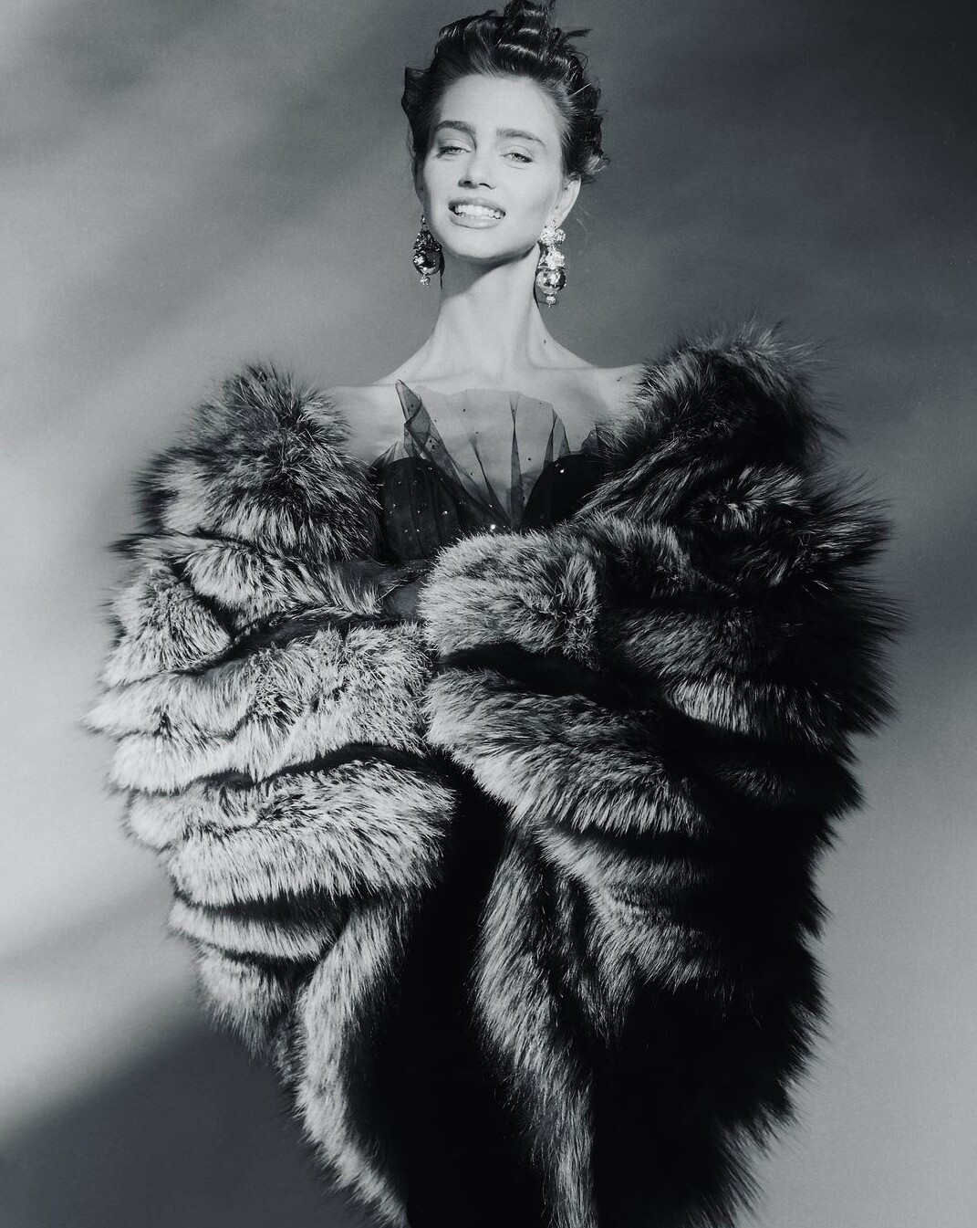 Don't worry,well Kim Andrea Stockinger is the model in fur,she wore her hair very short but also a bit long up to the shoulders like this editorial the model with the green dress in the middel with the photo down is Debbie Chin with oriental features and the other wearing a black gown is Nicola Burn Thomson