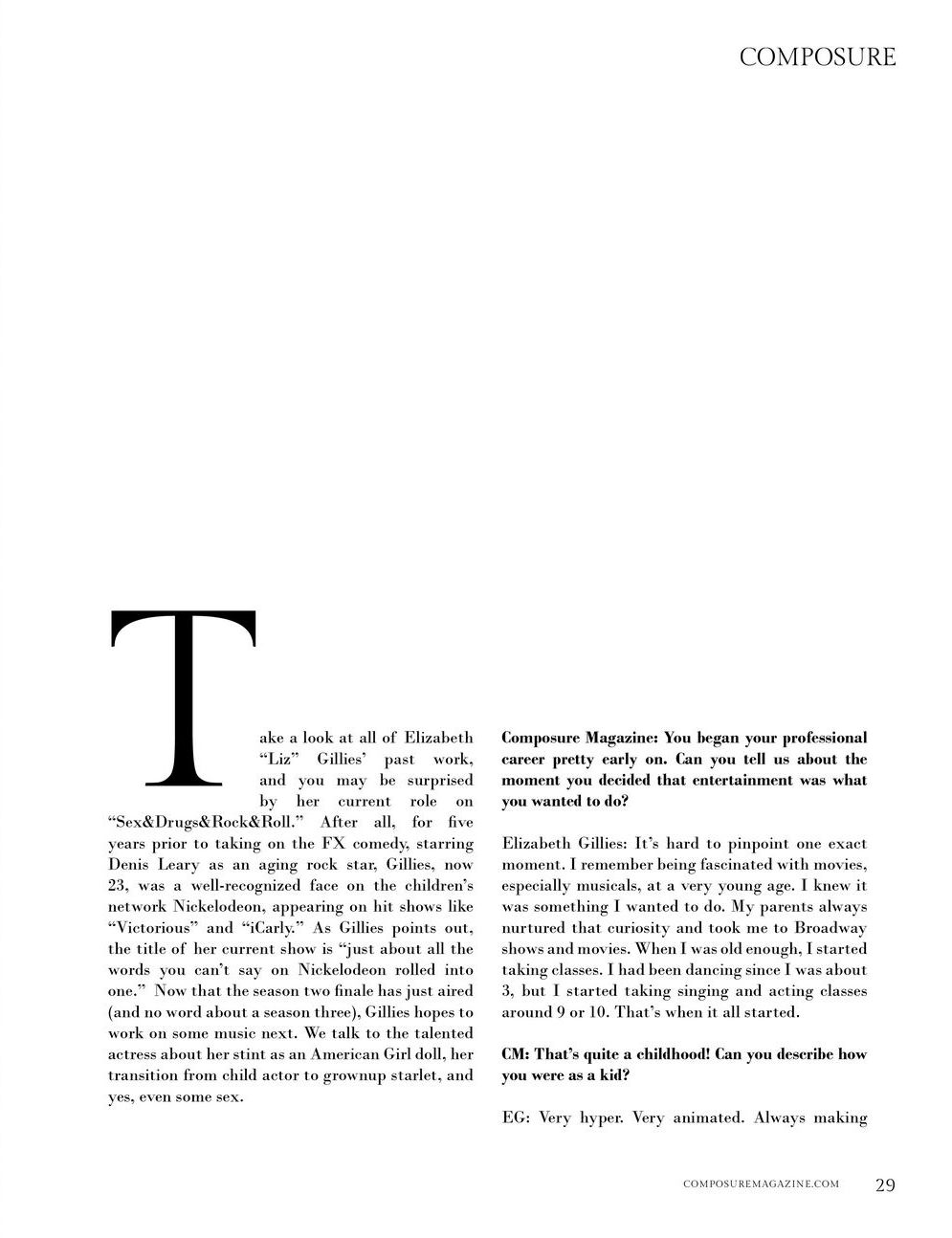 Elizabeth Gillies - 'Sex&Drugs&Rock&Roll' Billboard Interview 2015