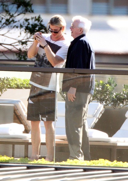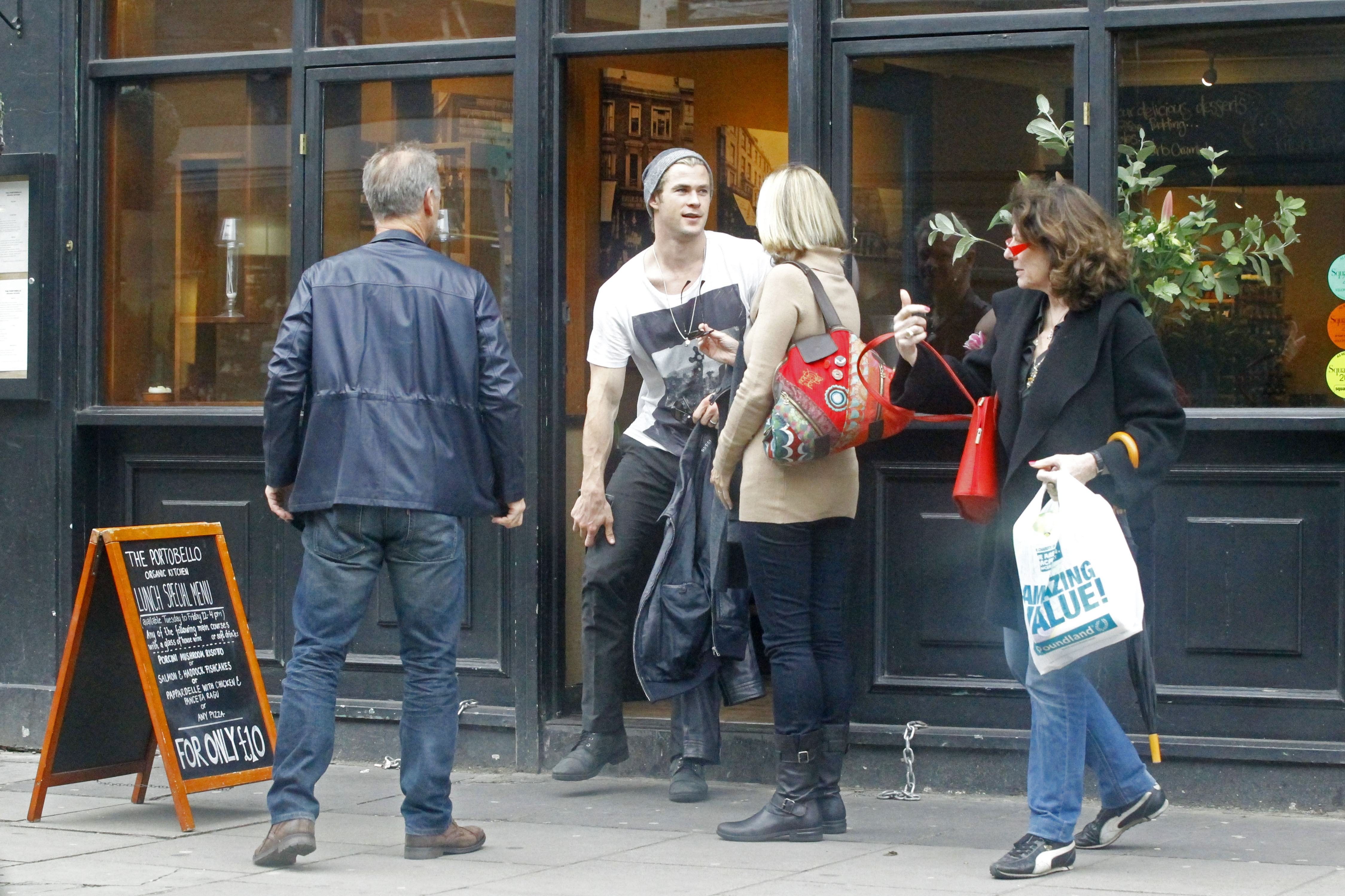 The 28-year-old Australian actor was also joined by his parents, Craig and Leonie, for lunch at a British pub.