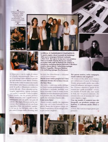 Page 2 "Gisele incarna...": Gisele perfectly embodies the Stefanel woman; sensual, soft, real. Without stereotypes. Like our fashion.