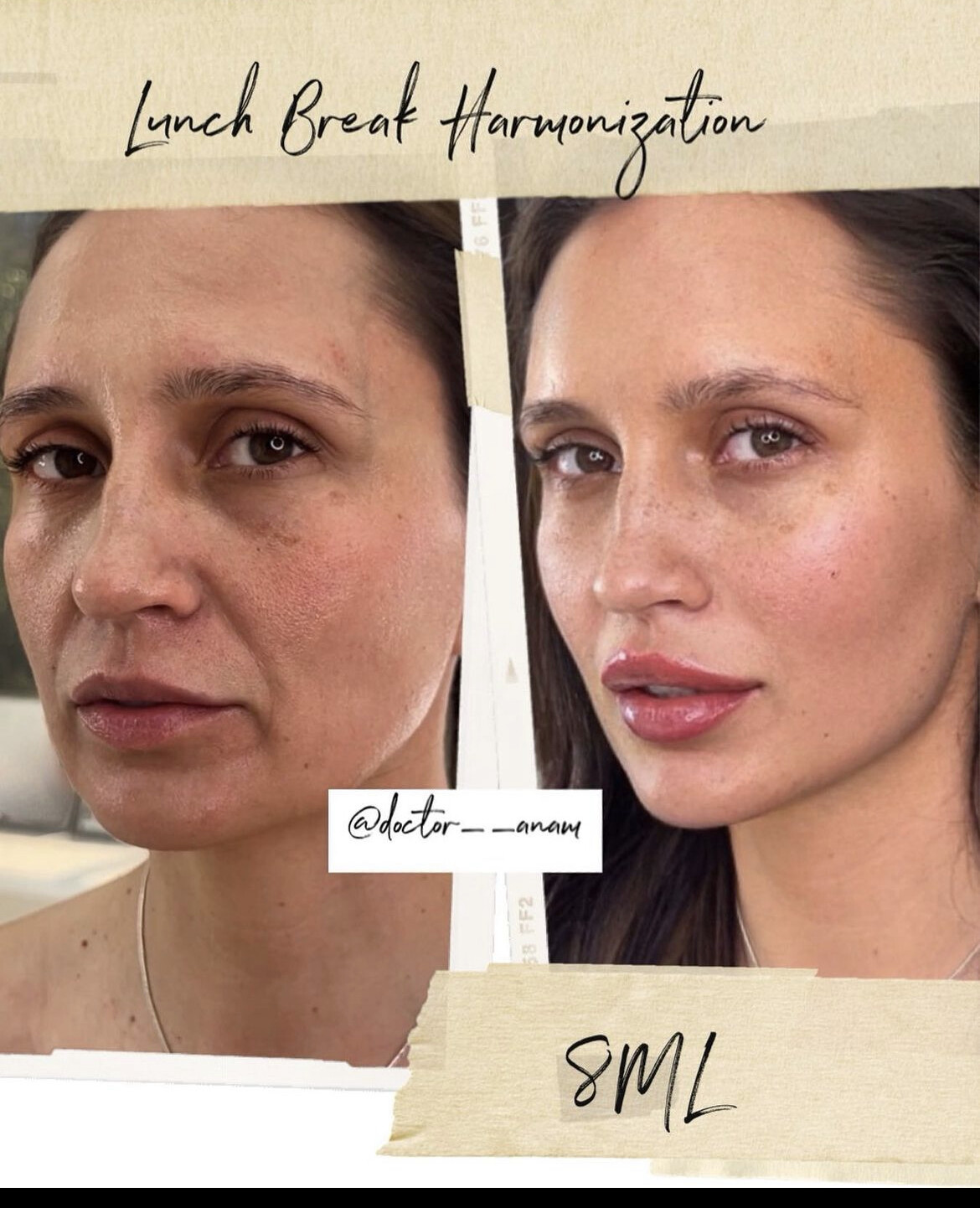 photo on the left is before work, on the right after work. Adriana doesn’t look like the right. She looks closer to the left BUT wayy better. Which is why I said she looks better than still