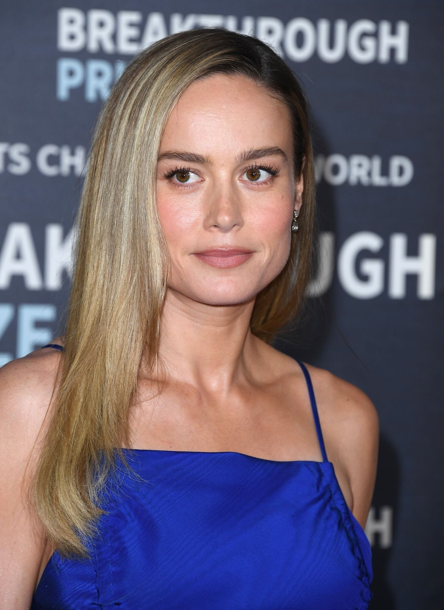 Brie Larson in blue dress 04/15/2023