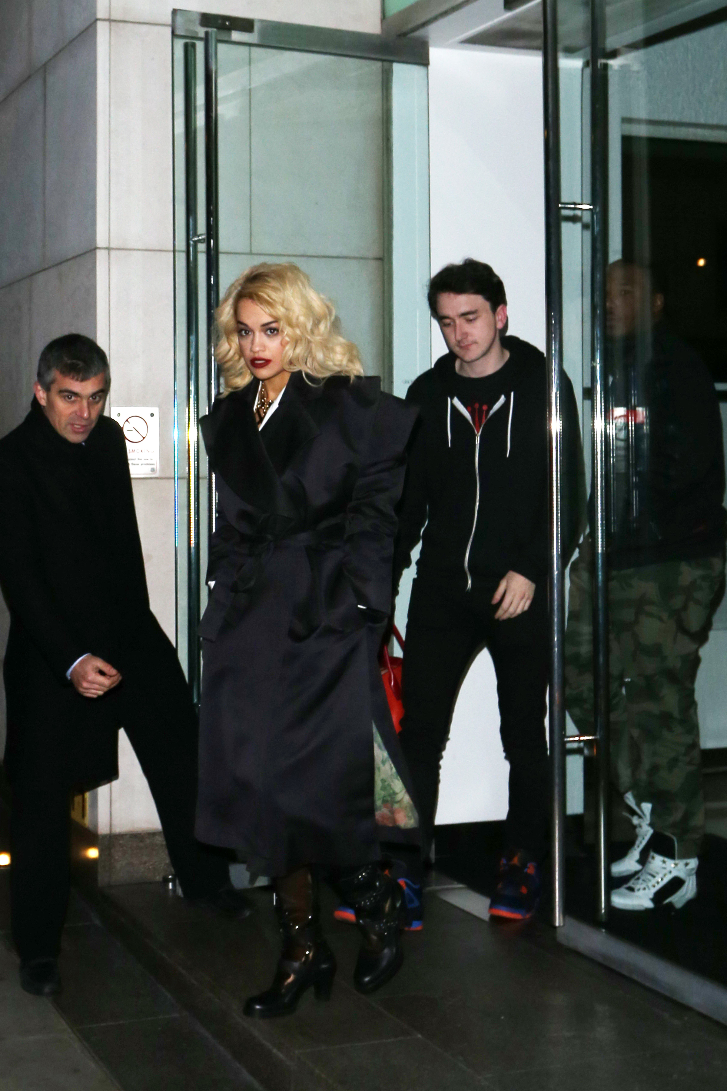 leaves NOBU Parklane restaurant. November 4, 2012