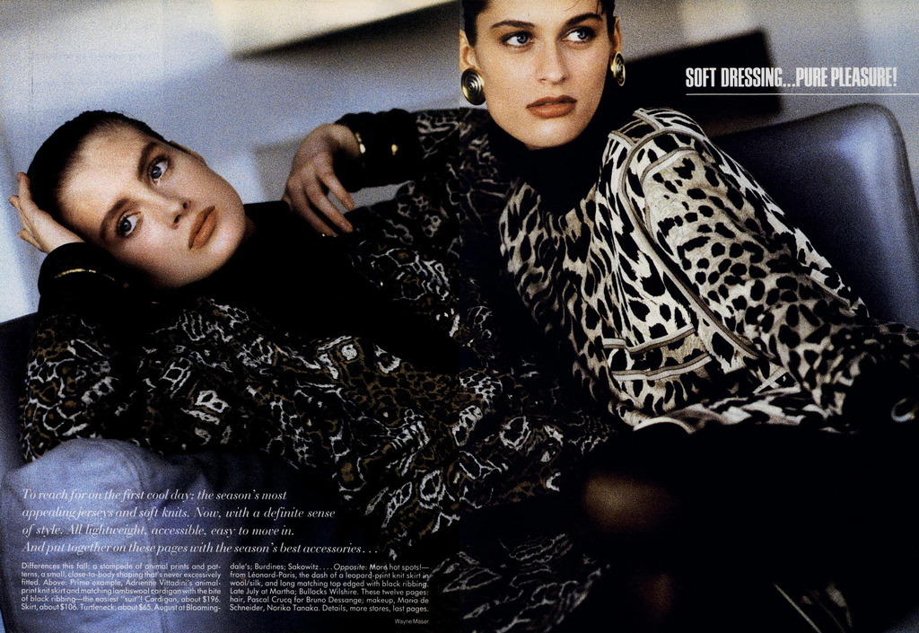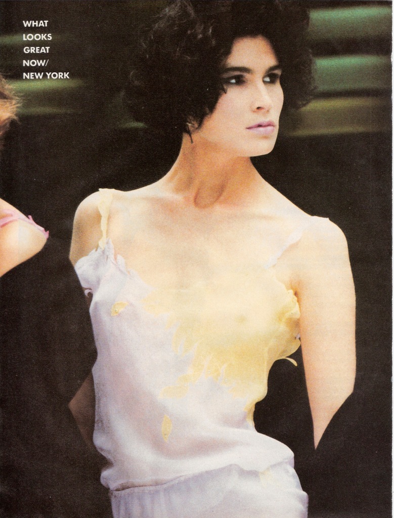 US Vogue July 1986 Soft Dressing...Pure Pleasure! Photographer: Wayne Maser Models: Vanessa Duve, Cindy Crawford, Kim Williams, Michelle Eabry & Unknown Hair: Pascal Crucq Makeup: Maria de Schneider & Nariko Tamaka