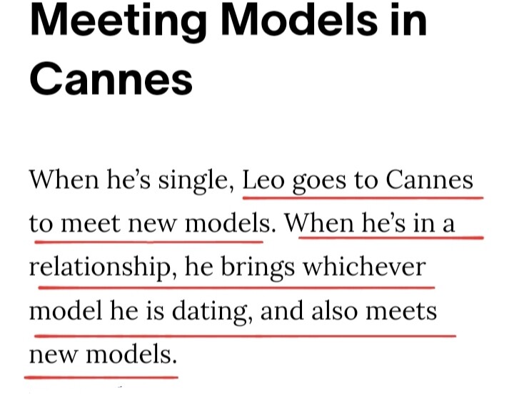 22 hours ago, ClaraA said:Leo was challenged because of his relationships and ME TOO ERA created a bad situation for his image. He was looking for a pr girlfriend to start a different relationship with her to prove that he is not a player.he chose lorena rae at Cannes 2017, despite the fact that Camila was also present at Cannes 2017 but lorena was his first choice