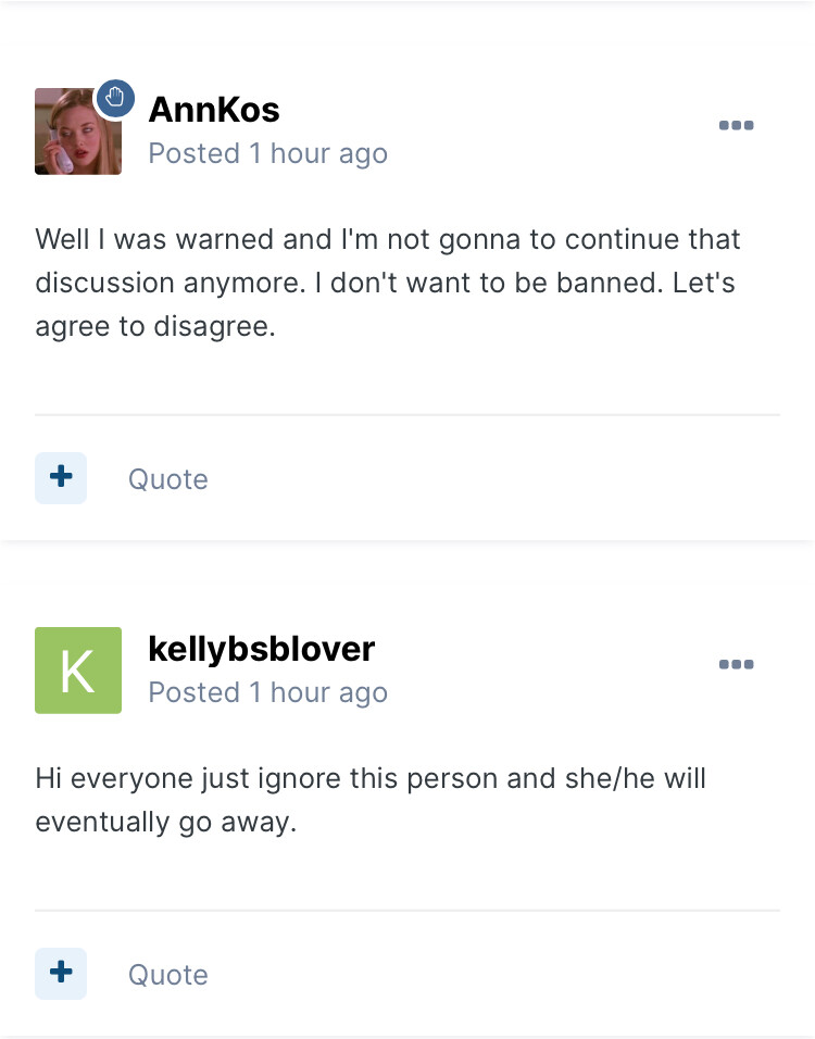 Like I said I will respond to all your accusations and insults but apparently for you, people, can’t even defends themselves! Gaslighting is not working I didn’t attacked any of you! Not once!
