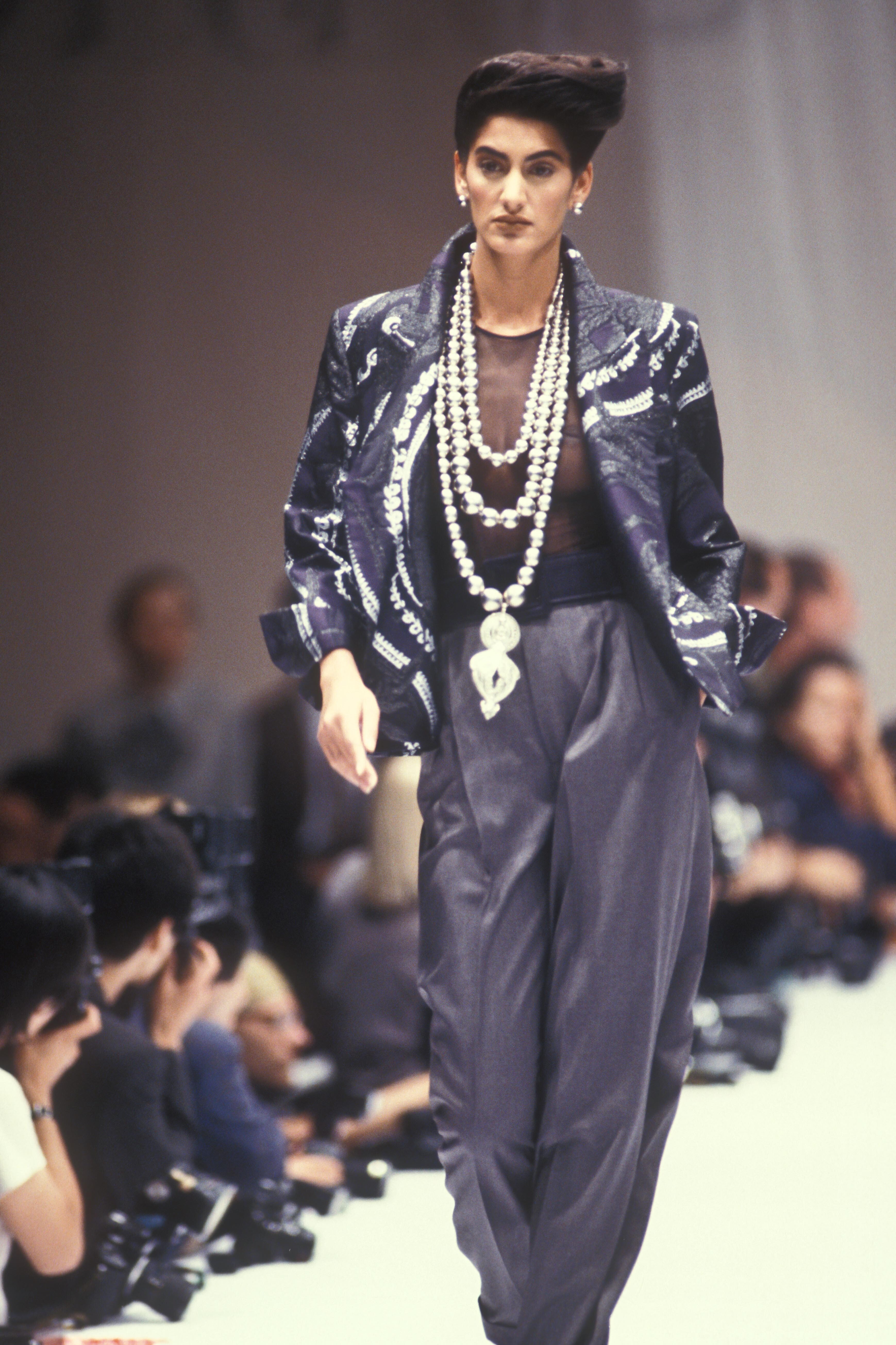 Katharine Hamnett, Karl Lagerfeld, YSL, Chanel, Kenzo; spring 1990 to fall 1992.