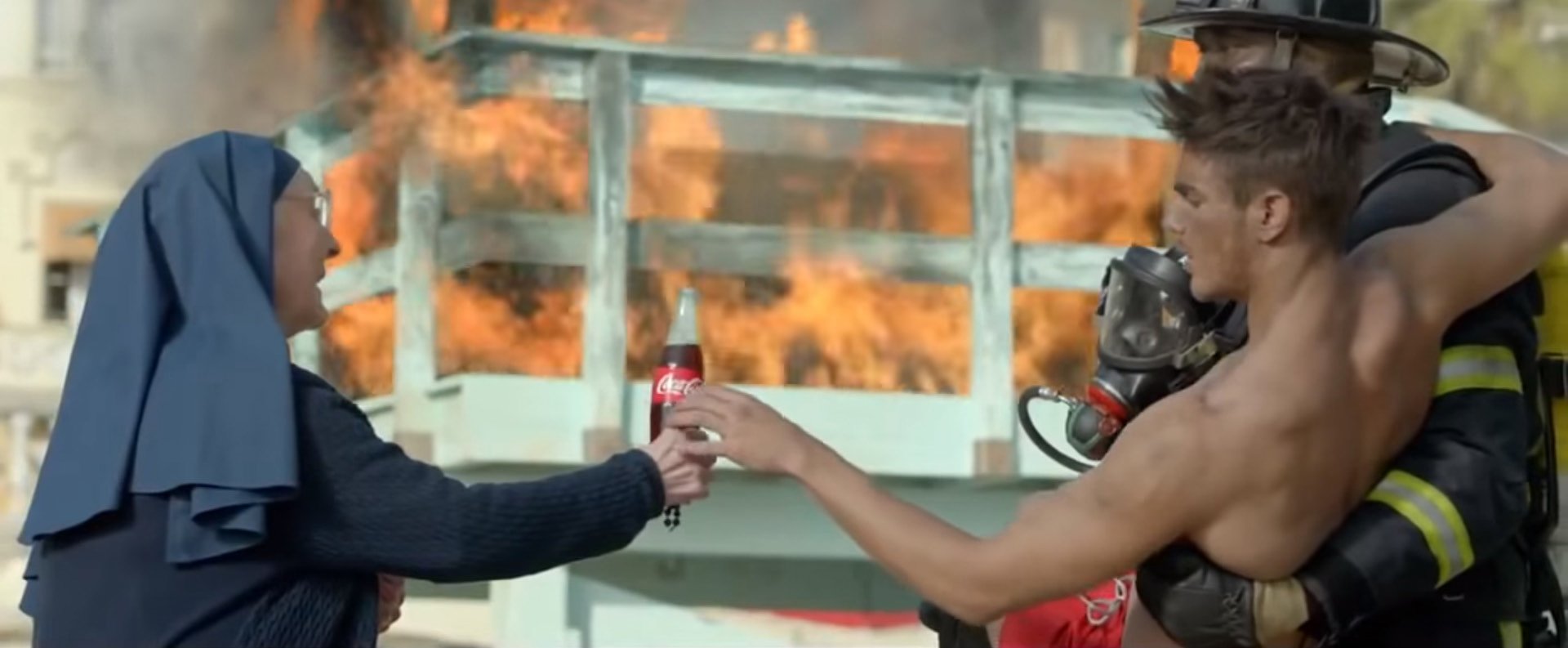 Sergio saved by a fireman, Mother Teresa gives him Coca Cola, video