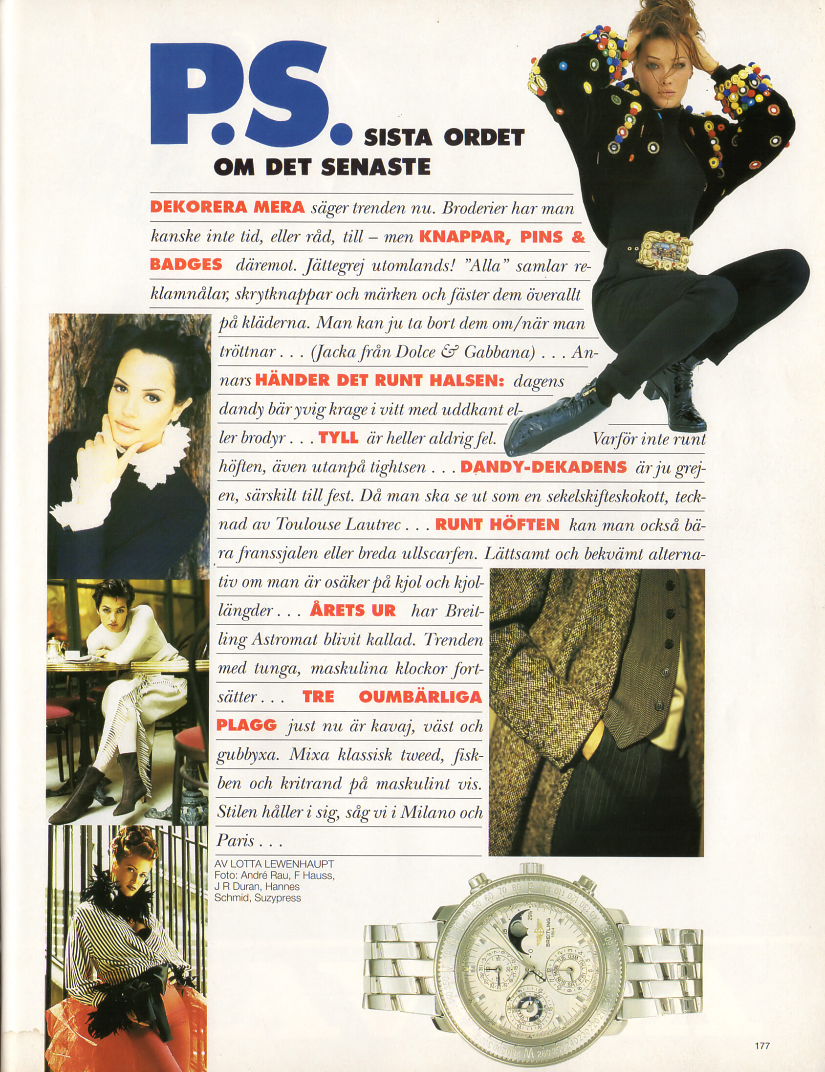 "P.S. SISTA ORDET OM DET SENASTE" - ELLE Sweden December 1992 by Lotta Lewenhaupt, Andre Rau, F. Hauss, J.R. Duran, Hannes Schmid