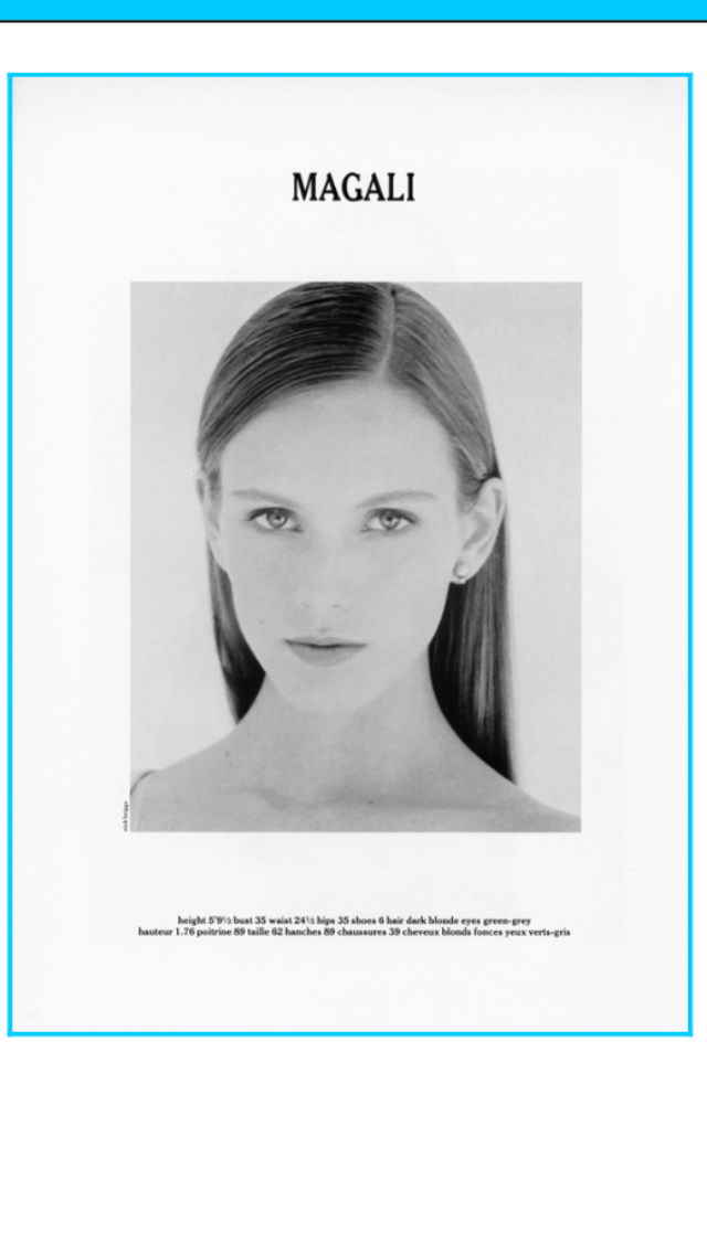 I found out,she is French Model Magali Lemoine.She has the same facial bone estructure and the principal proof of evidence ( pic # 2) :moles on her neck and around the mouth like Comp Card # 1.The difference she is more blonde than Comp Card,where the type of hair specified is dark blonde.