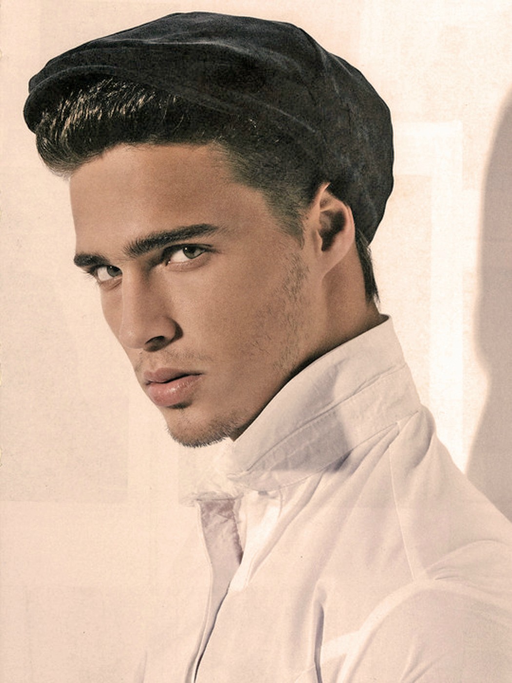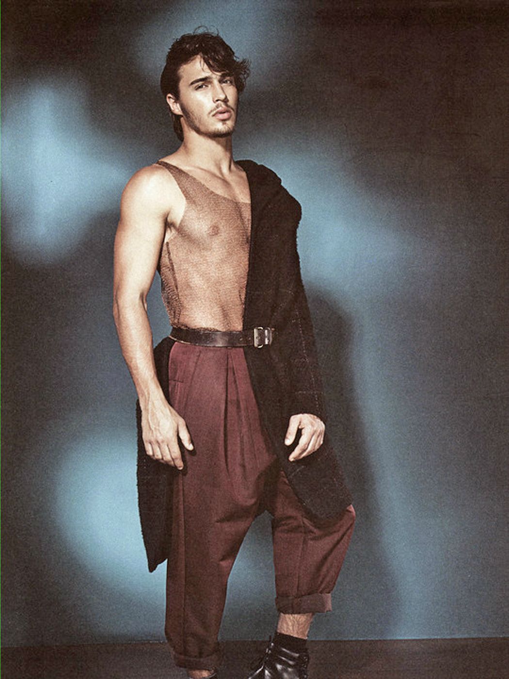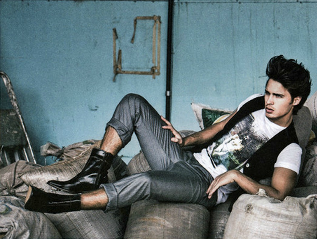 I love the peekaboo shots (the first one and the last one) in this post; he's playing all coy and shy and that's a real turn on! I like his hair at this length much better than the way he had it in the previous post. But I can't say I care for the goggle-type glasses; they hide his beautiful eyes. ![]()