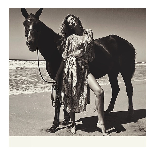 The floor is different in every photo lol but I would say the floor in H&M ads and the floor in the photo with dog look very similar. Home styling and decor make me think that it was shot in her home and they also shot on the beach under her house where paparazzi often photograph Gisele.