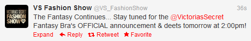Alessandra Ambrosio @AngelAlessandraI am so honored to be wearing the Fantasy Bra in the#vsfashionshow! Can't wait for you all to see it in the show.