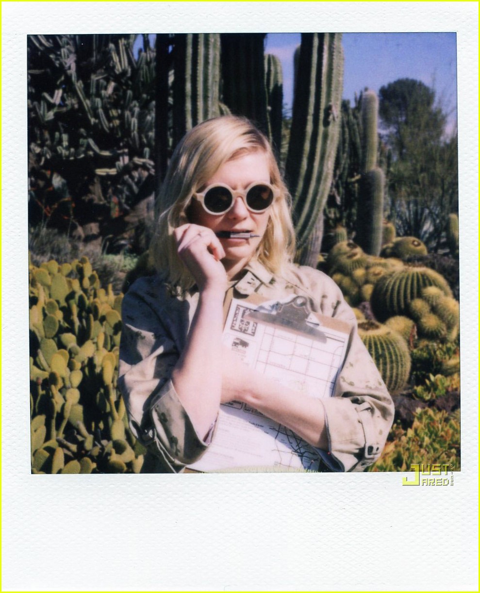 Kirsten Dunst models a cool floral camouflage print jacket from Band of Outsiders at the Huntington Botanical Gardens on Tuesday (February 1) in Pasadena, Calif.