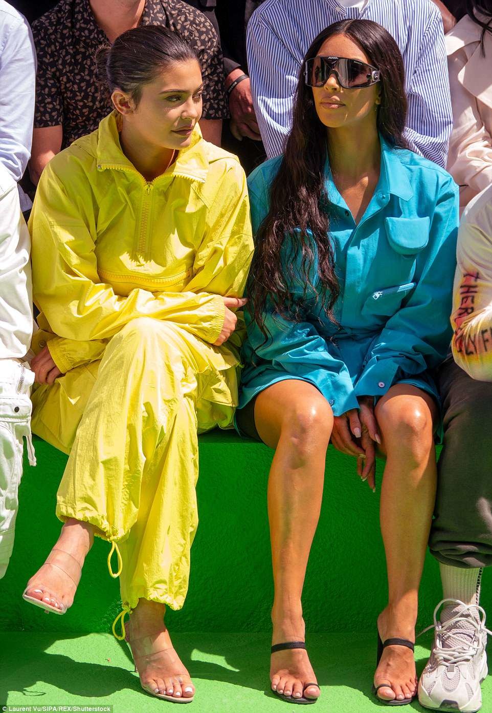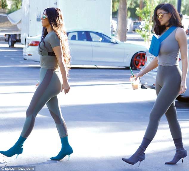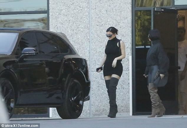 "You guys, imagine this, but all in lip kits," says Jenner, dressed in a black blazer and matching black patent Louboutins with bright red soles. "I think it needs to be a clear vending machine where you see all the colors."