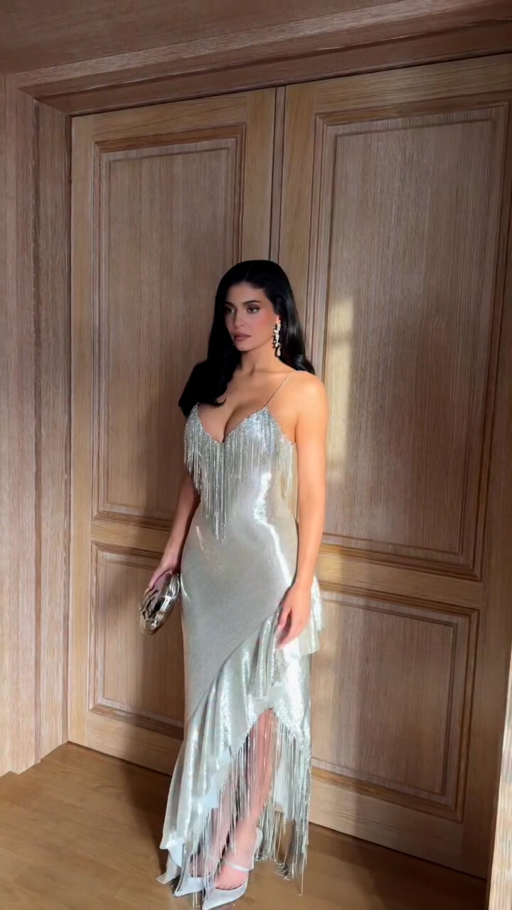 Kylie Jenner in metallic silver gown 10/02/2025