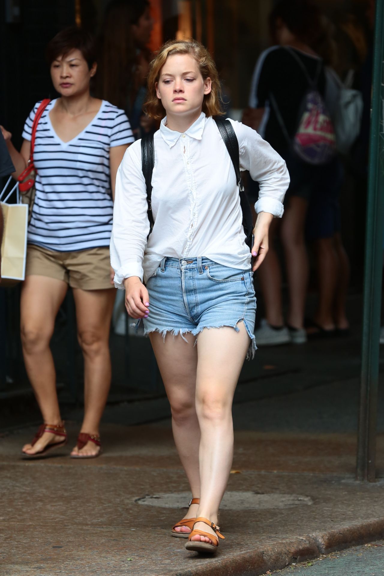 A leggie Jane in Jeans Shorts – Out in New York City – August 2014