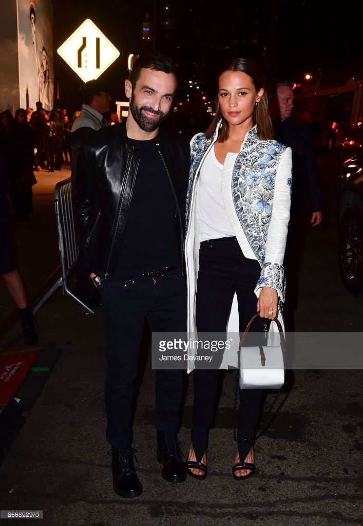 Louis Vuitton Artistic Director Florent Buonomano and Alicia Vikander attends the Volez, Voguez, Voyagez - Louis Vuitton Exhibition Opening on October 26, 2017 in New York City.