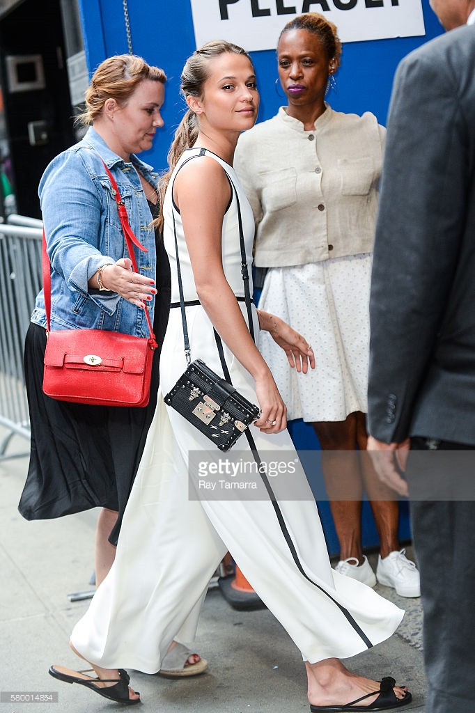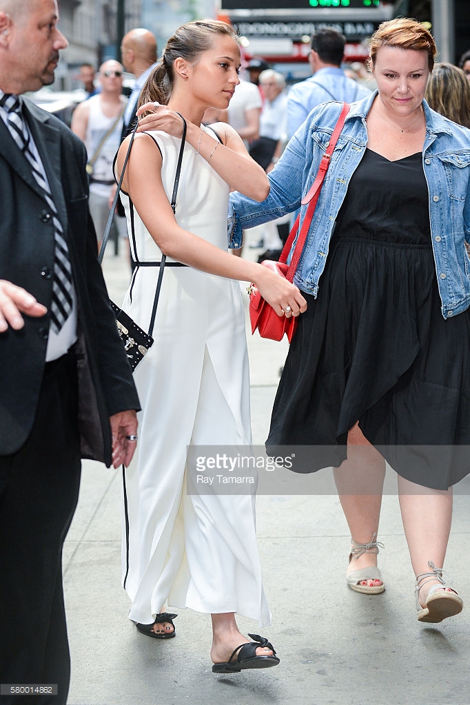 Actress Alicia Vikander enters the 'Good Morning America' taping at the ABC Times Square Studios on July 25, 2016 in New York City.