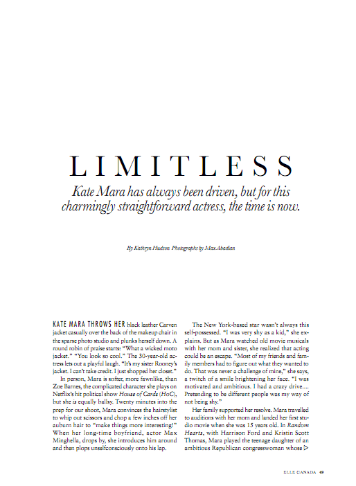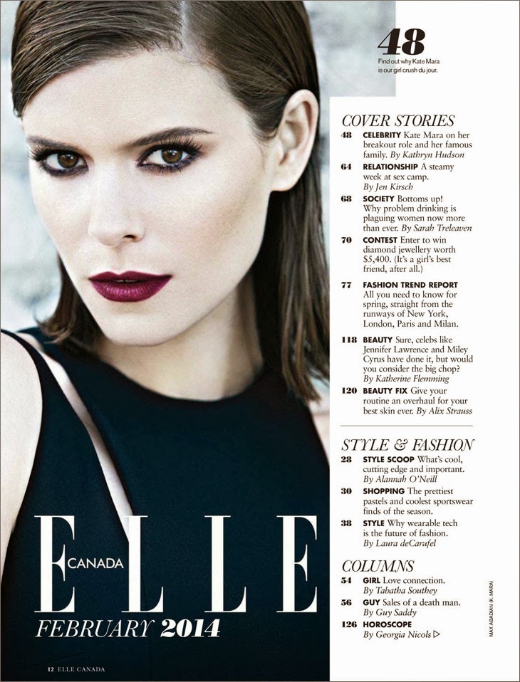 Cover + cover story for Elle Canada February 2014