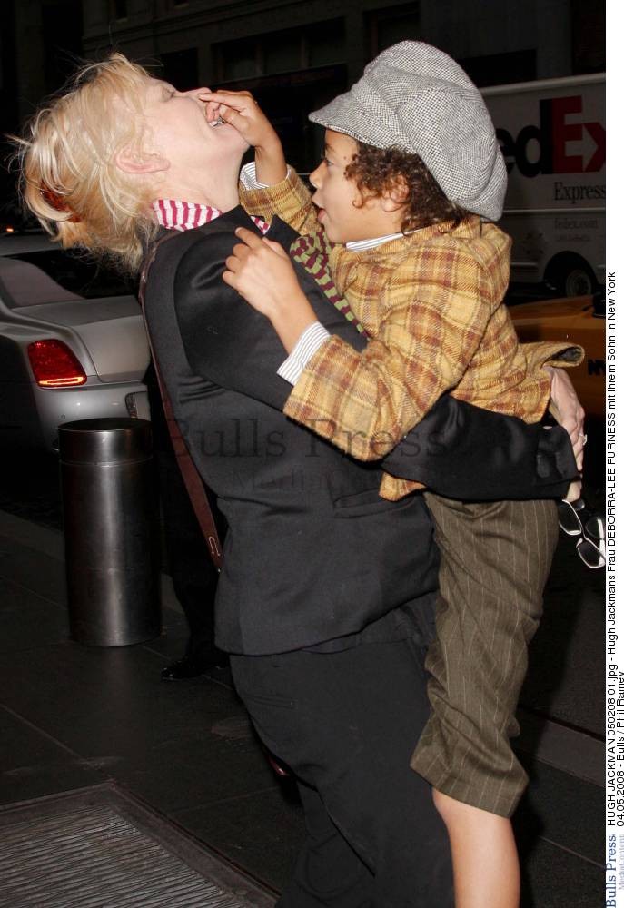 The Aussie actor, who turns 40 next Sunday, had the two favorite females in his life visit him on set–his wife Deborra-Lee Furness and their 3-year-old daughter Ava Eliot.