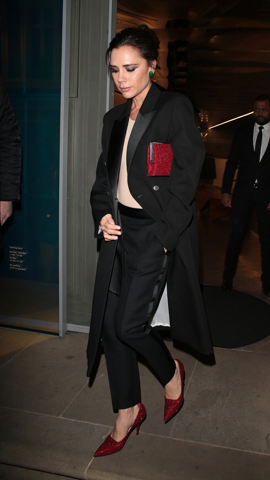 The 43-year-old former soccer pro looked handsome in a navy suit as he attended the unveiling of his new statue.