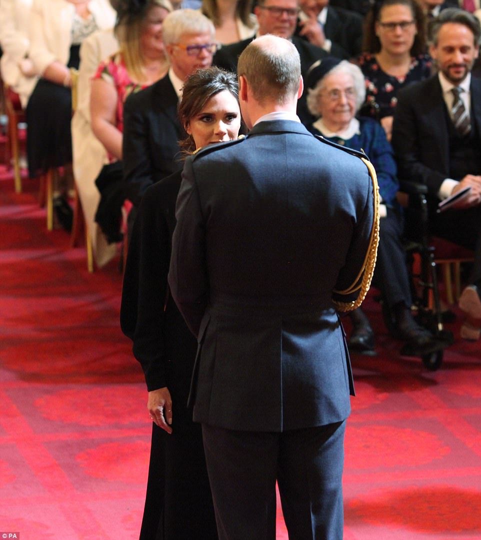 getting her OBE from Prince William at Buckingham Palace