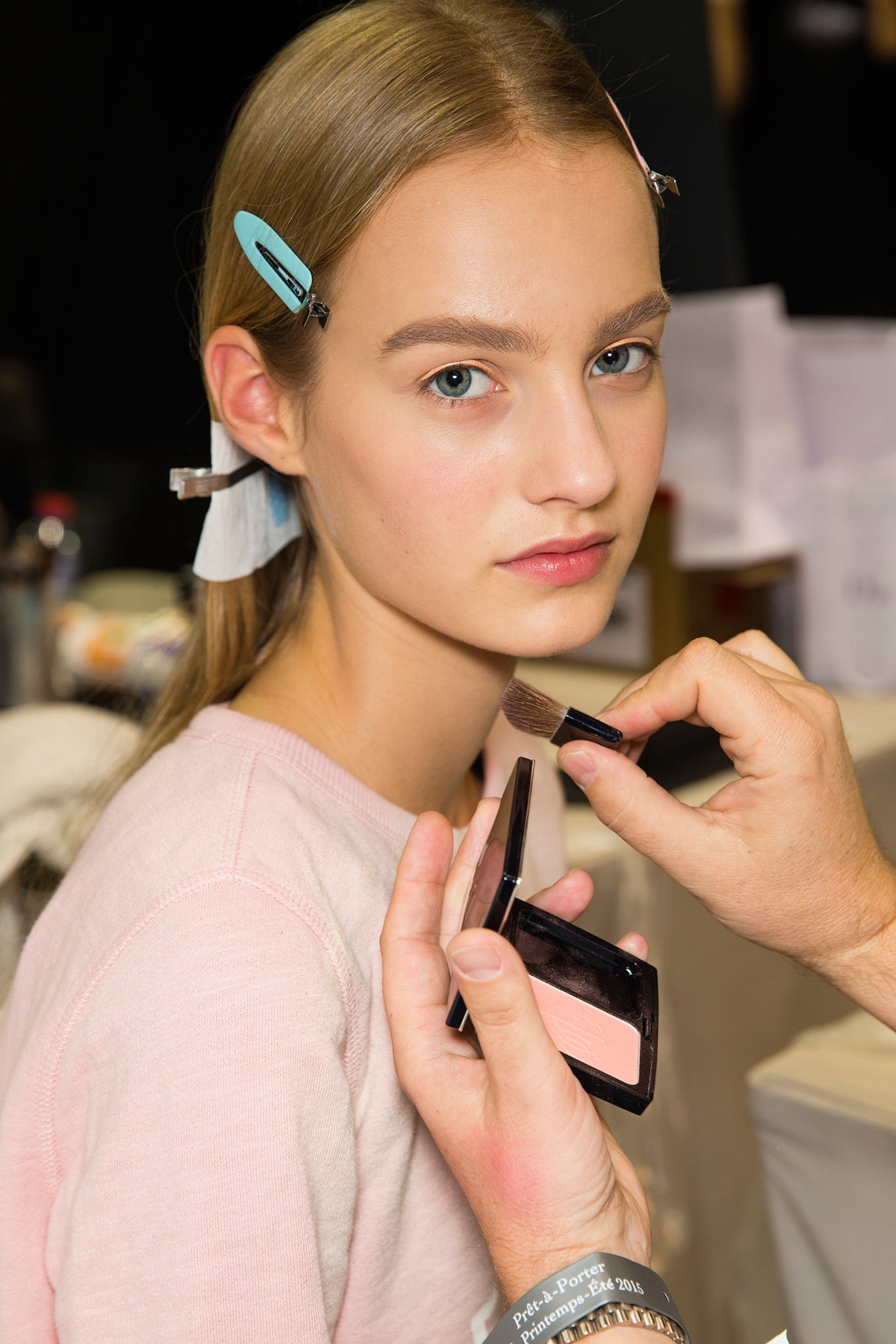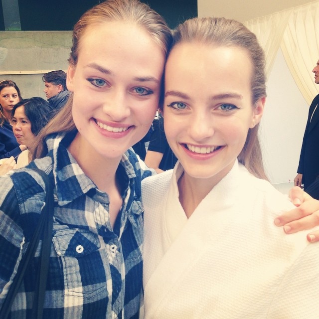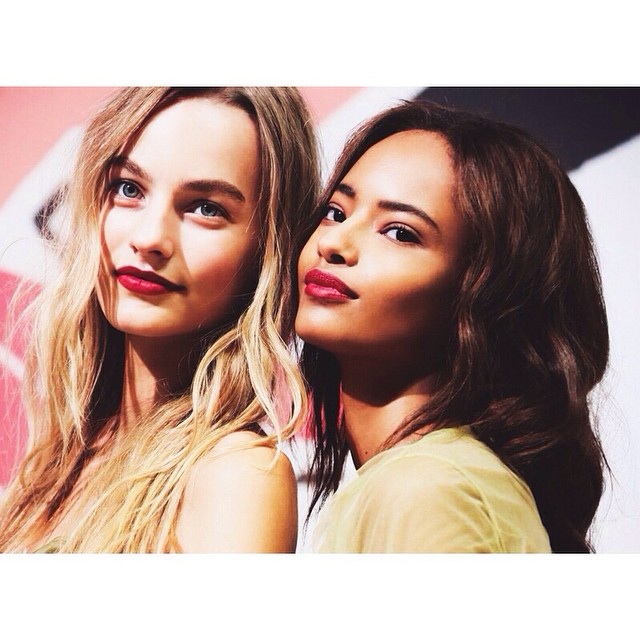 Contoured cheeks and nude eyes on beauties Malaika and Maartje, backstage at Burberry SS 2015. #malaikafirth #maartjeverhoef @malaikafirth @maartjeverhoef