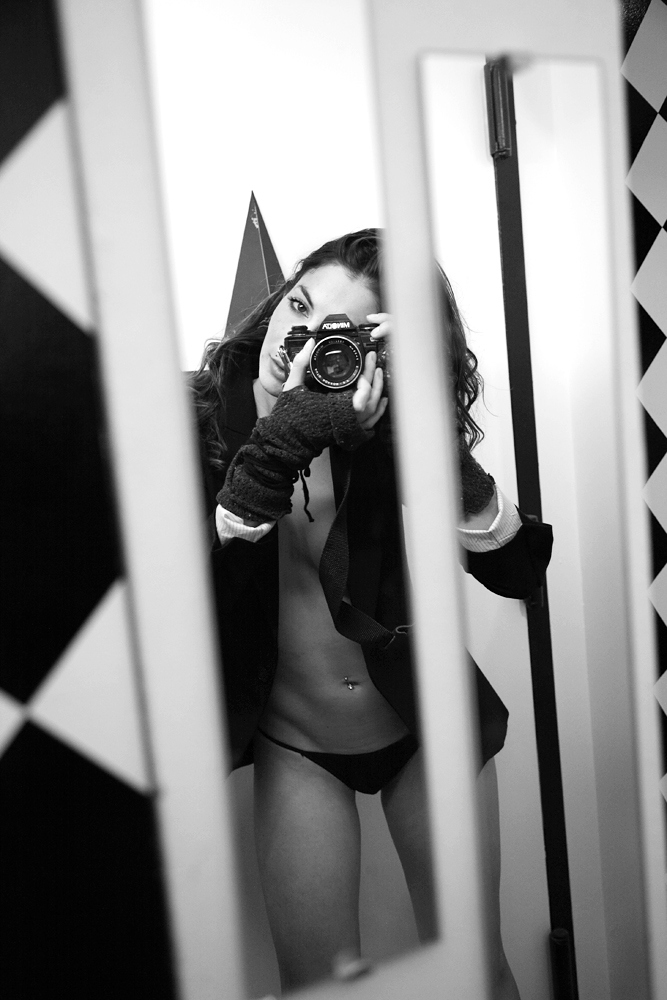 Parisian photographer Erica Simone, 25, who has been going around the Big Apple taking self portraits of herself wearing nothing but her birthday suit.
