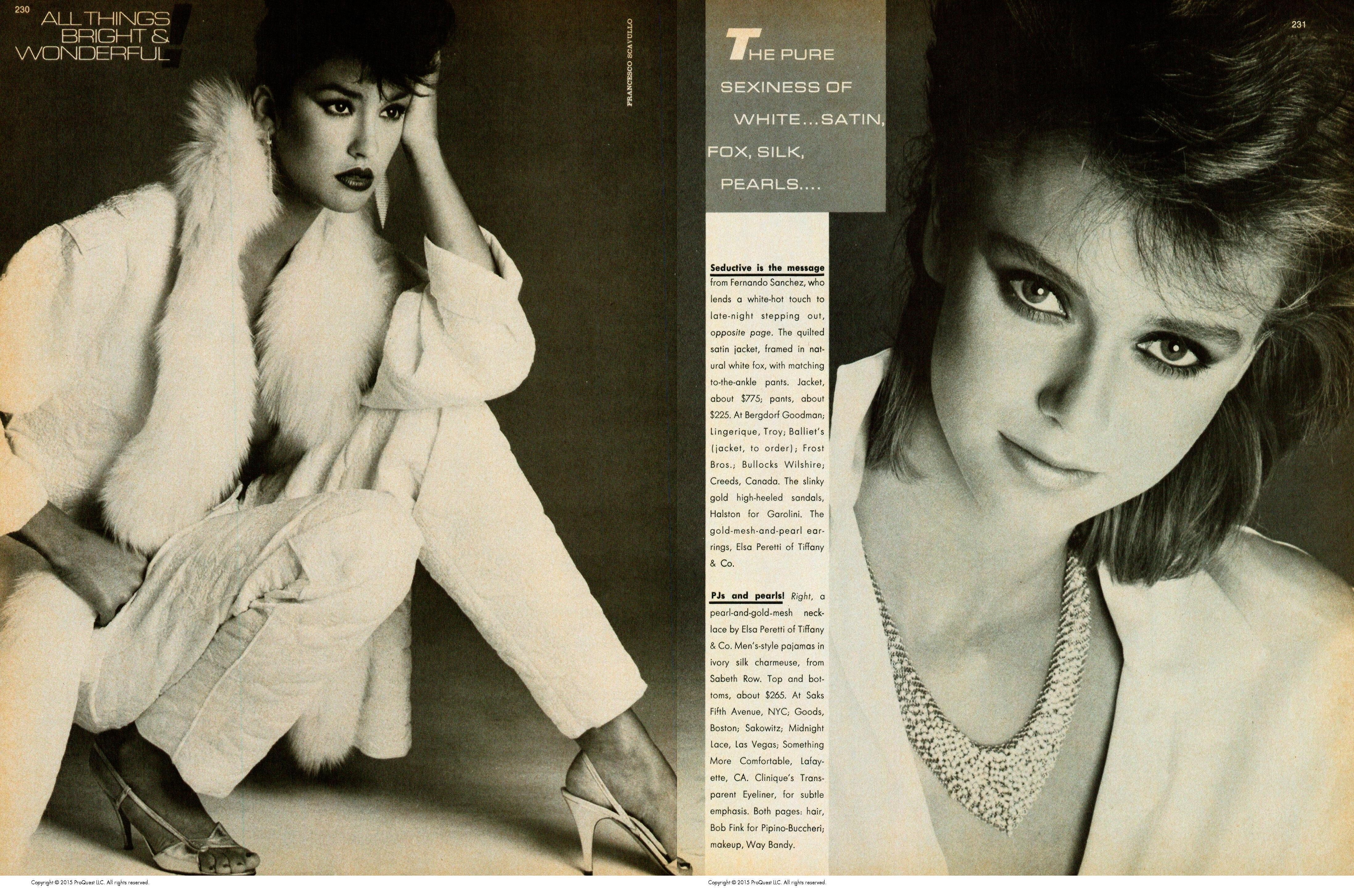 Models: Lena Horne, Brooke Shields, Victoria Principal, Lois Chiles, Jacqueline Bisset, Jaclyn Smith, Cristina Ferrare, Susan Sarandon, Debbie Harry & Dayle Haddon