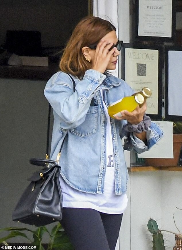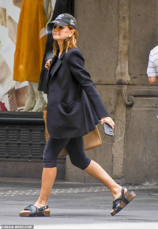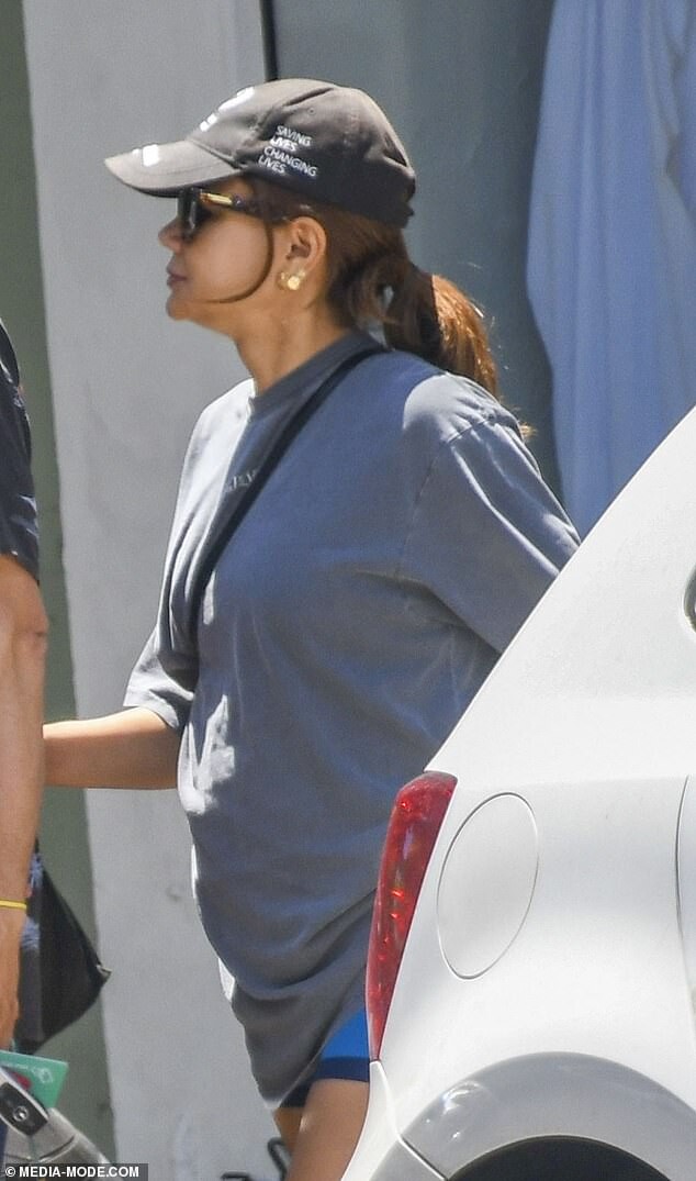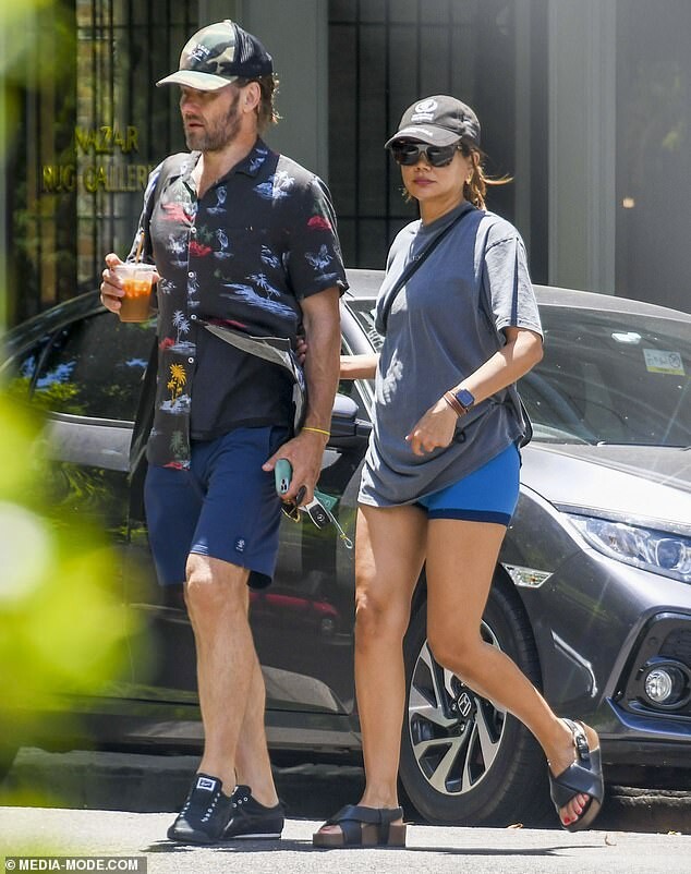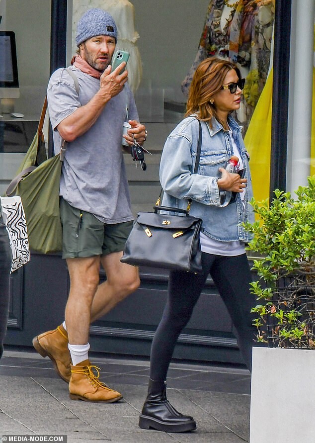 Joel Edgerton's girlfriend Christine Centenera cuts a casual figure in bike shorts and a baggy T-shirt as she runs errands with the actor in Paddington