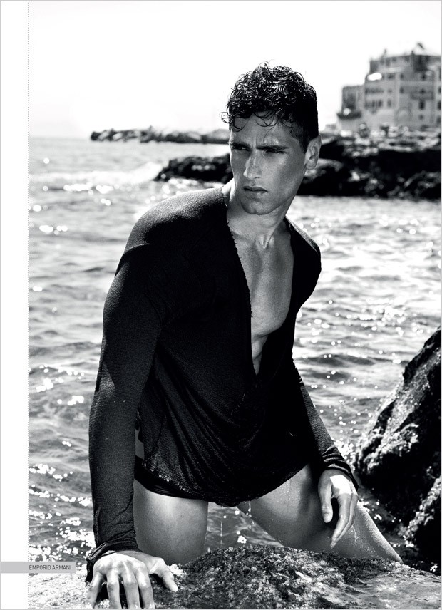 Fashion photographer Simon Minardi teams up with top model Fabio Mancini for the cover story of David Magazine‘s Spring Summer 2015 edition. For La grande bellezza story Fabio was styled in pieces from Emporio Armani and Armani Jeans. Makeup is courtesy of Liviana Loiudice. Photo assistance by Matteo Foresti.