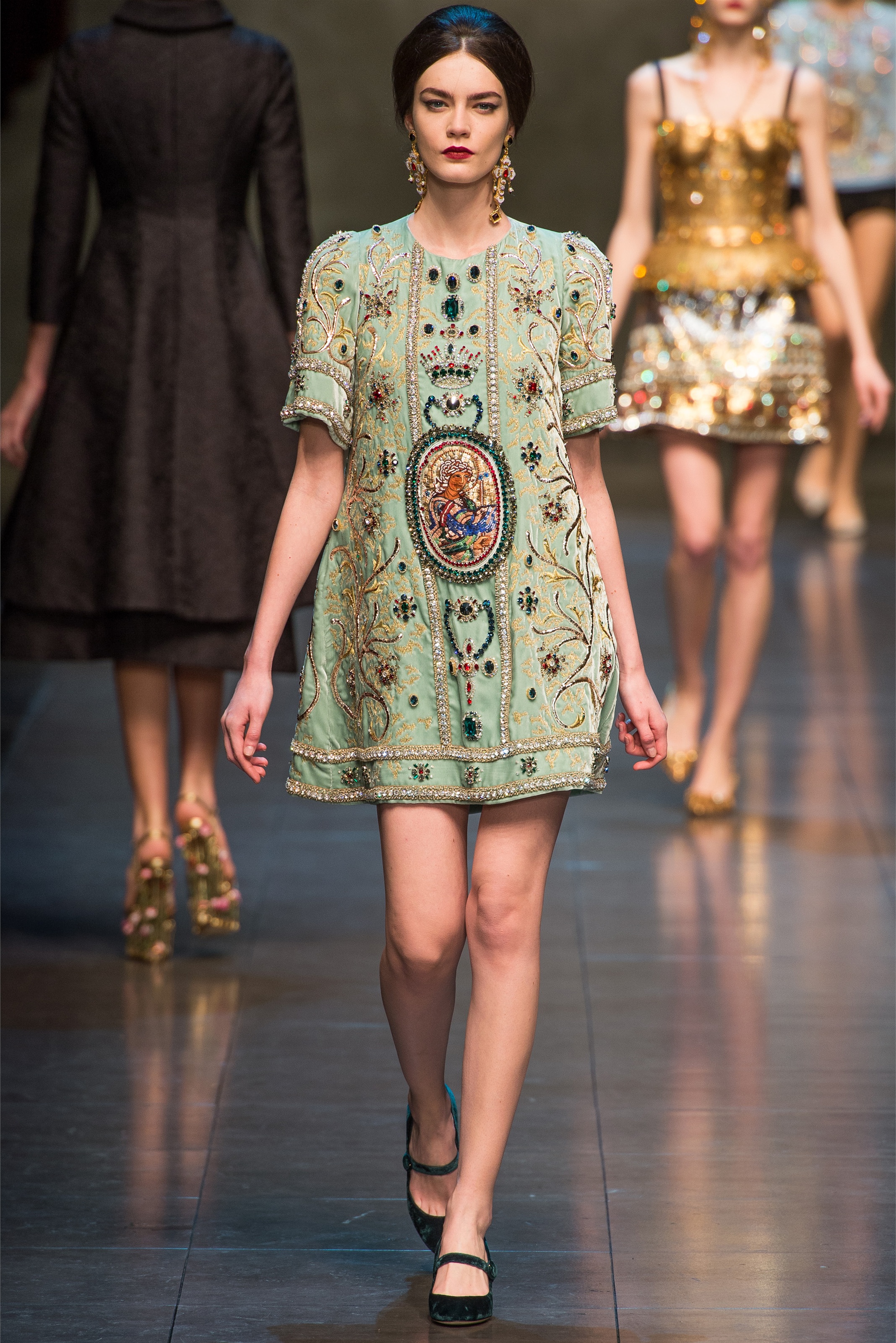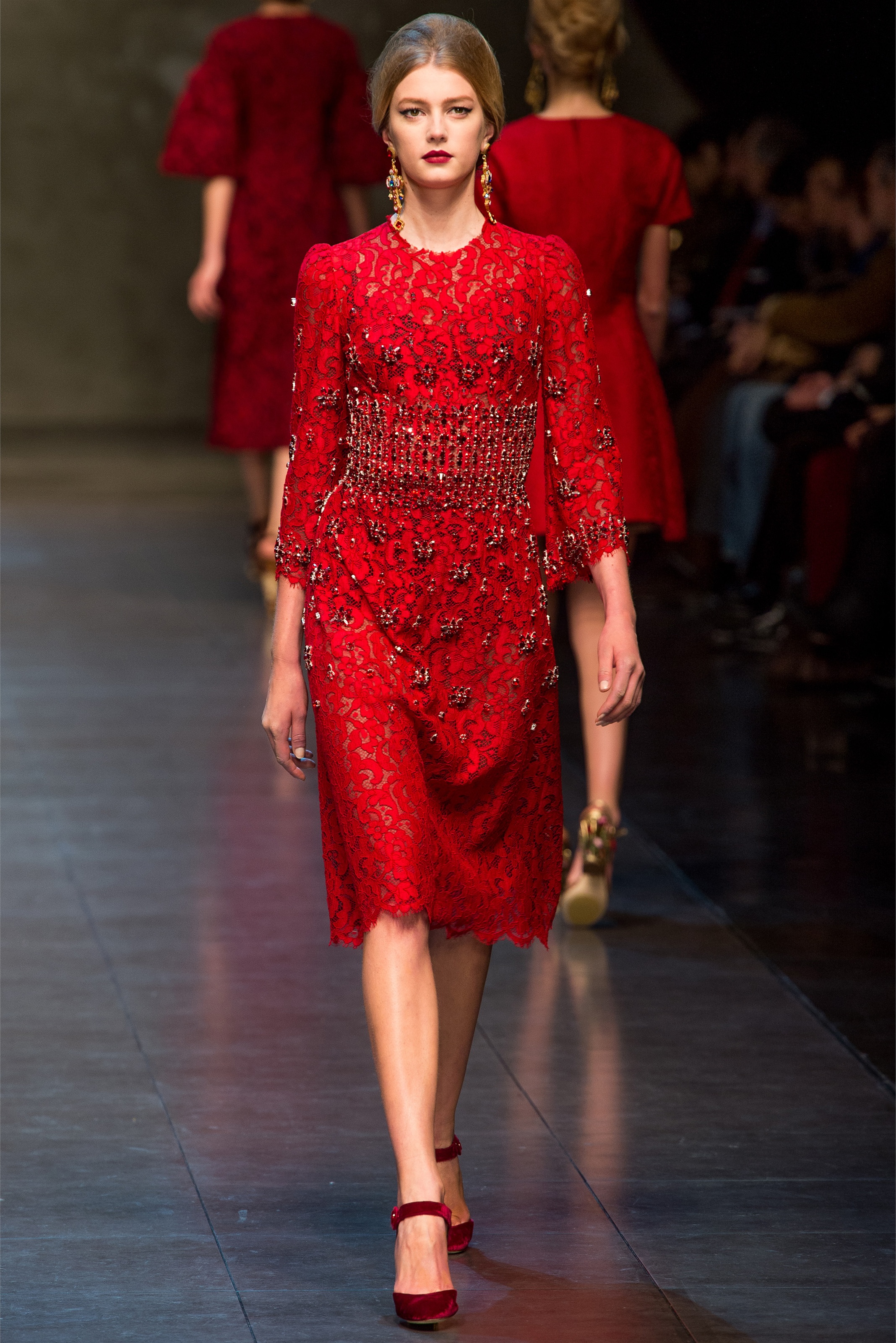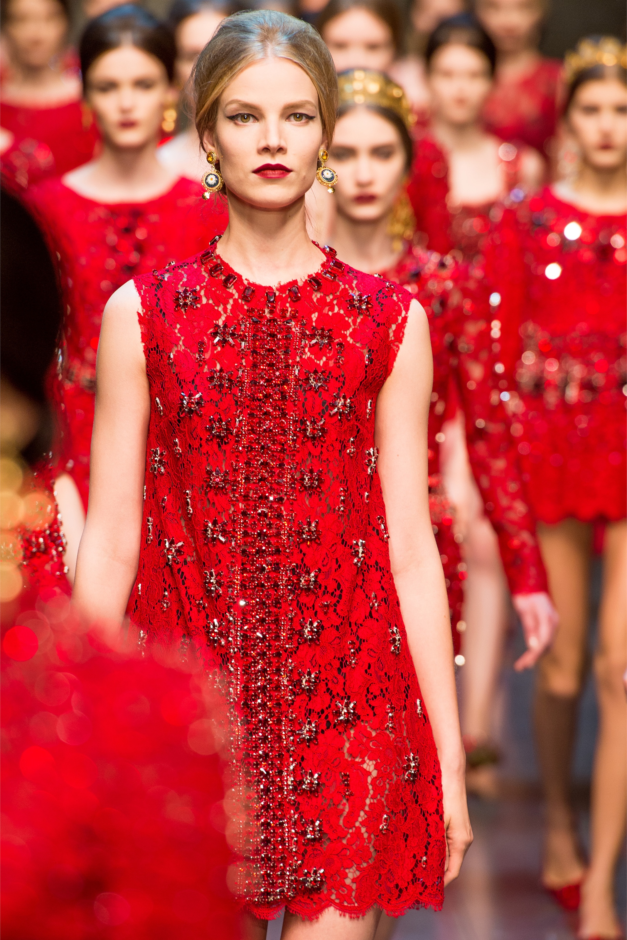 The use of red and the mosaic printed gowns are pretty. Best sicilian inspired collection so far!