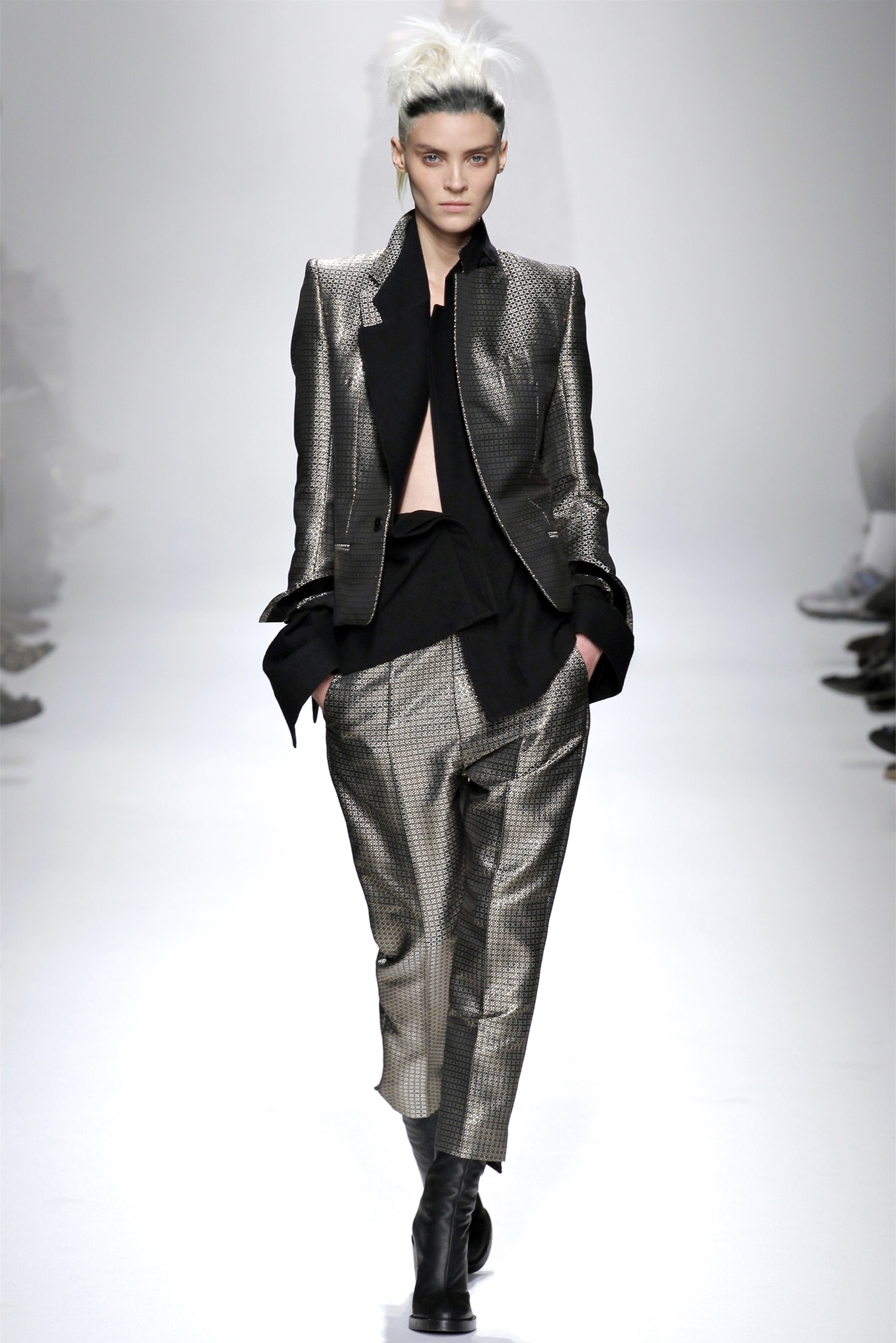 Strength and fragility are Haider Ackermann's lasting preoccupations, the subjects he returns to each season when you see him backstage. "It's a very thin line between them," he said today. Still, this controlled collection came down on the side of strength more so than some previous seasons have.