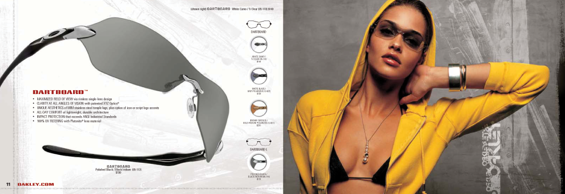 A new Oakley Advert from Jane Magazine August 2005. I would scan it somewhat larger, but as you can probably tell the paper quality is beyond horrible, and I don't have the patience to fix all of the paper fibers in the scan. Hopefully it will show up in a glossy mag somewhere soon.![]()