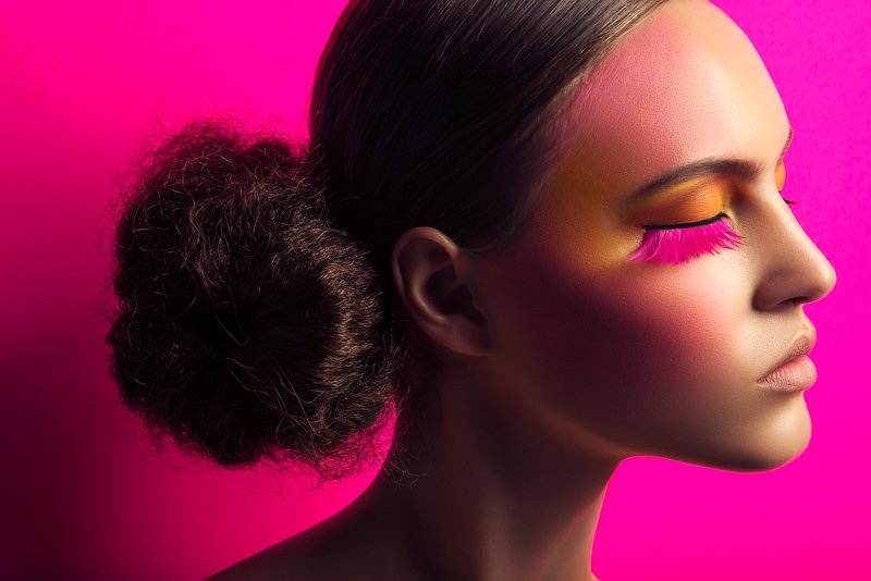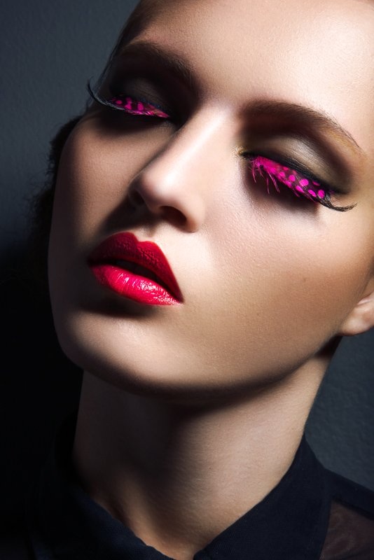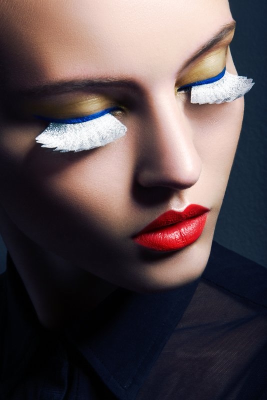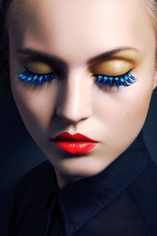 Lash Factor–Posing in a beauty shoot photographed by Jeff Tse, model Paloma Passos shows off colorful eyelash looks with an avant garde edge. Makeup artist Jen Navaro creates Paloma’s multi-hued lashes as well as vibrant eyeshadows while hair stylist Meg Cost gives her a sleek bun. / Production by Natalie Hayes