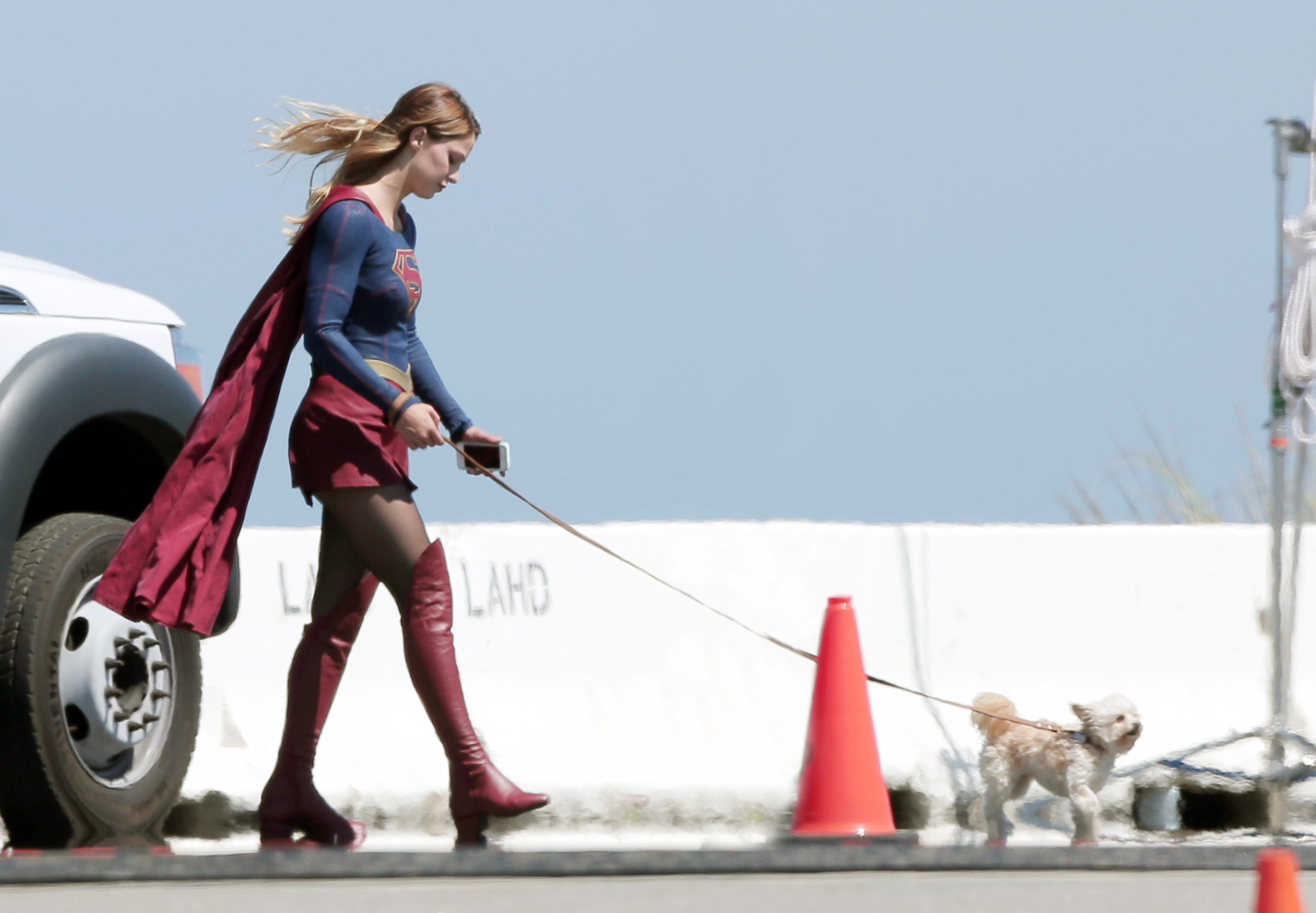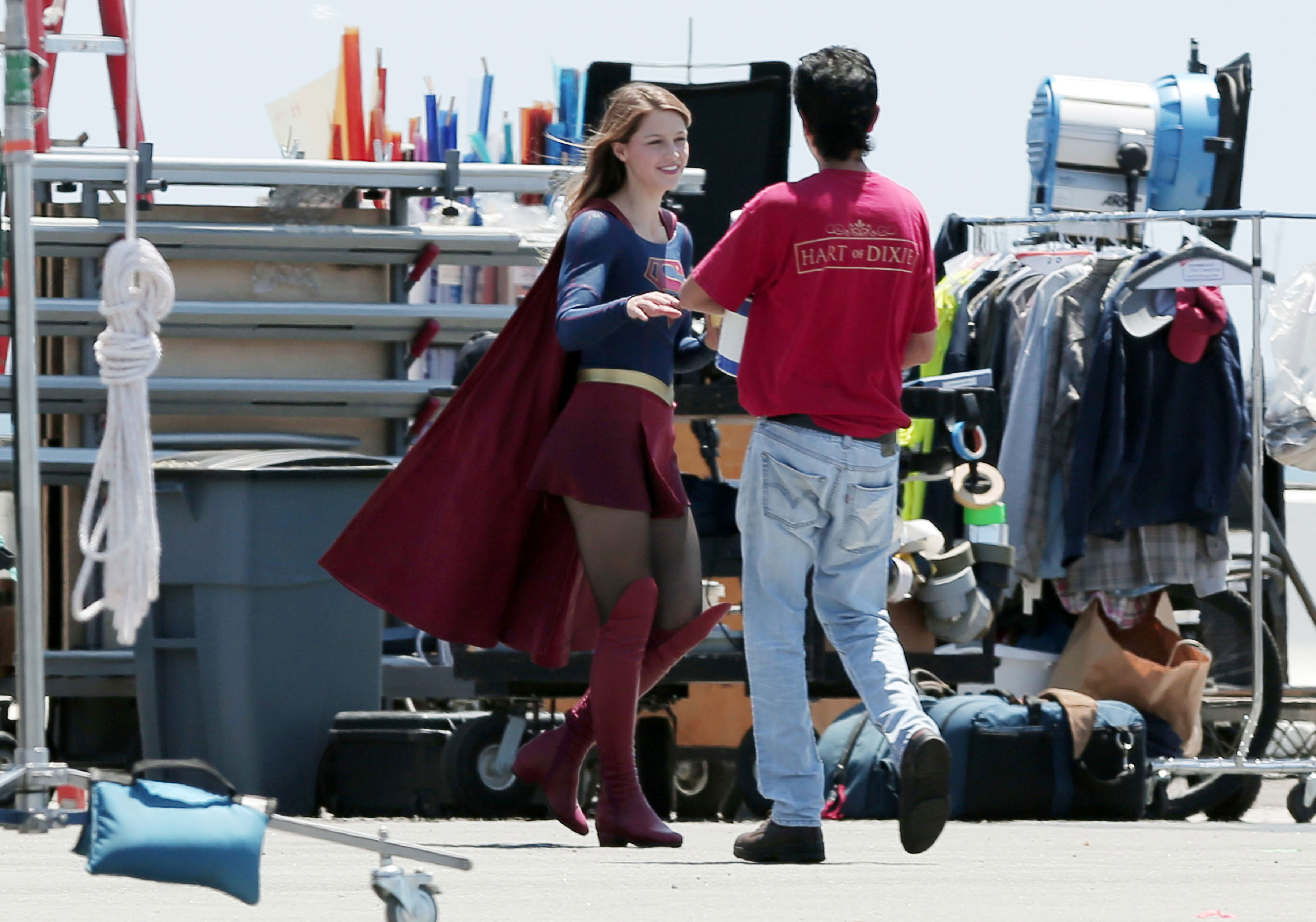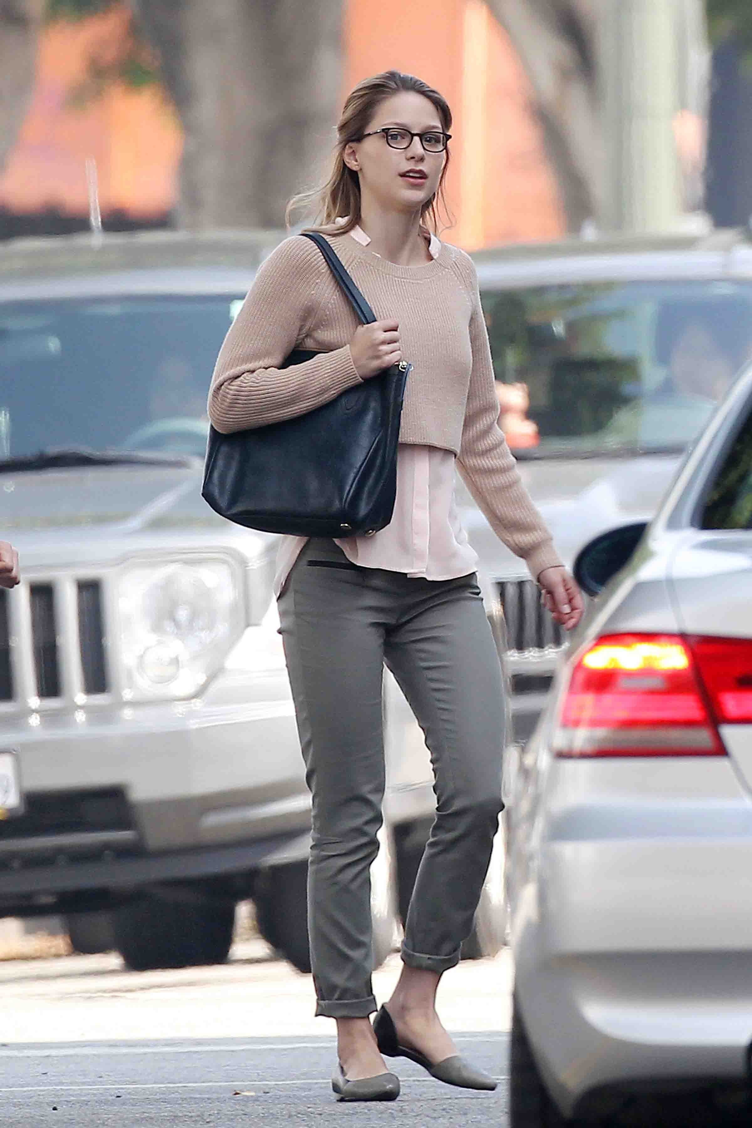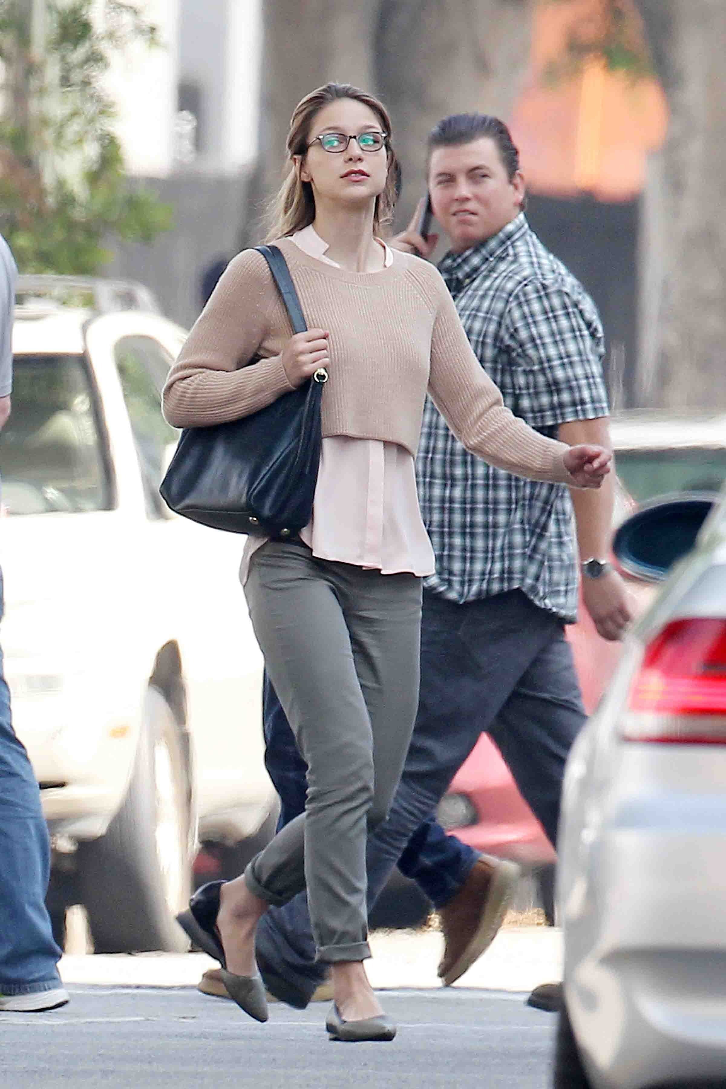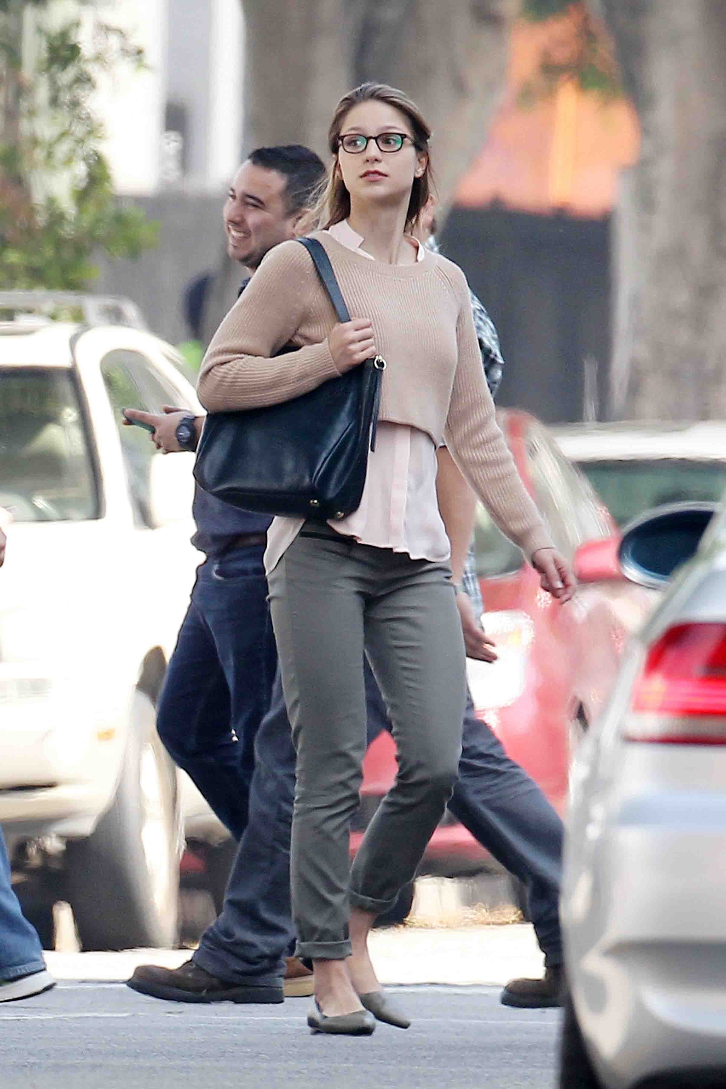 Melissa Benoist – On the Set of Supergirl in Los Angeles - October 2015