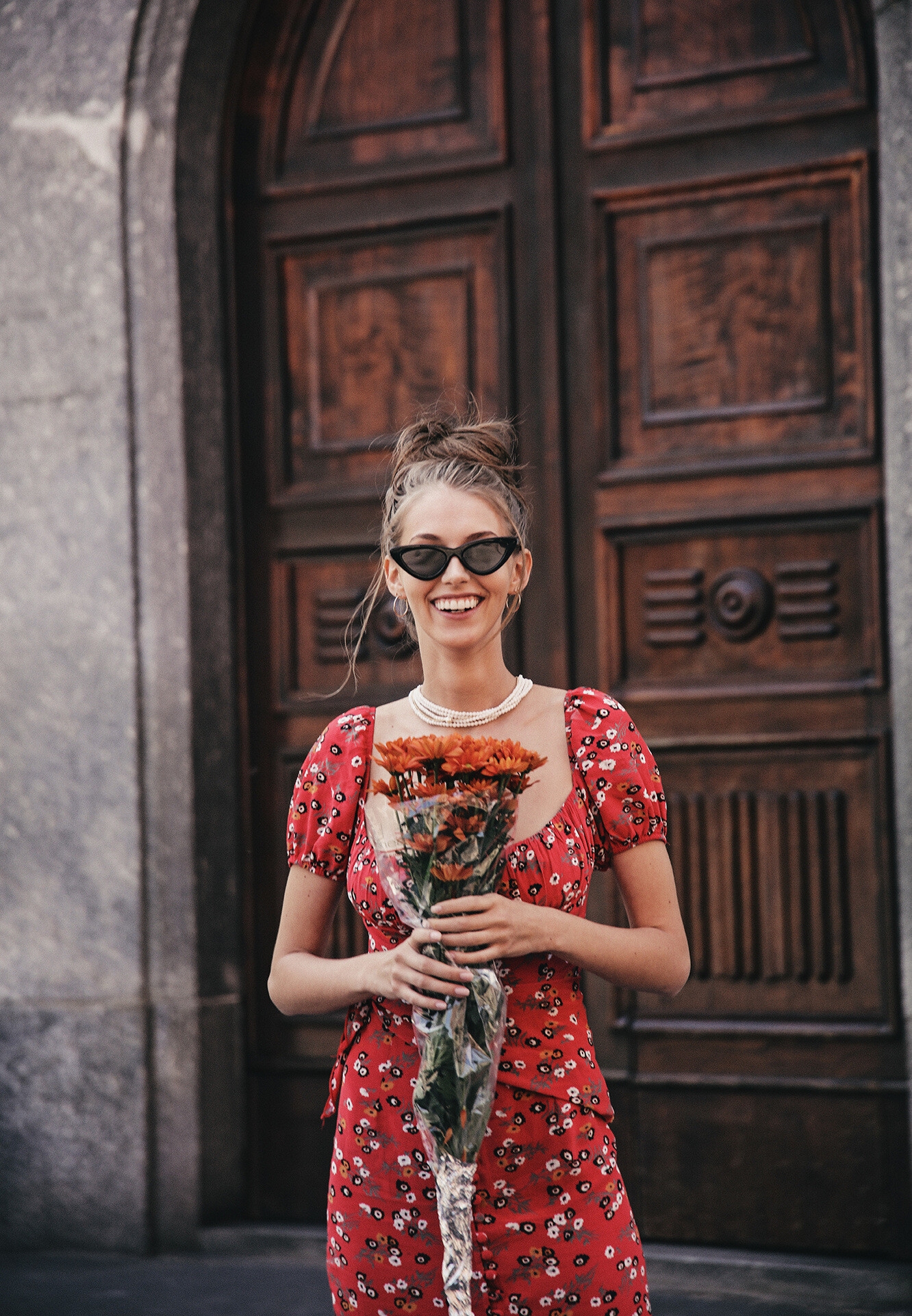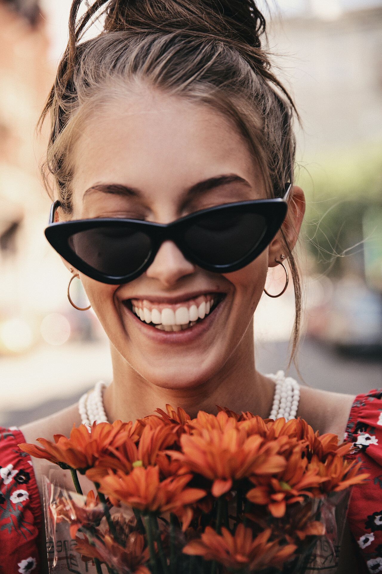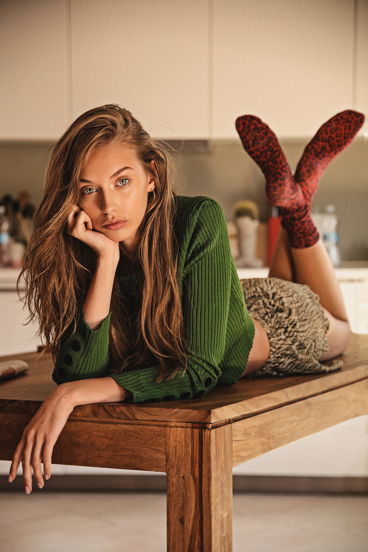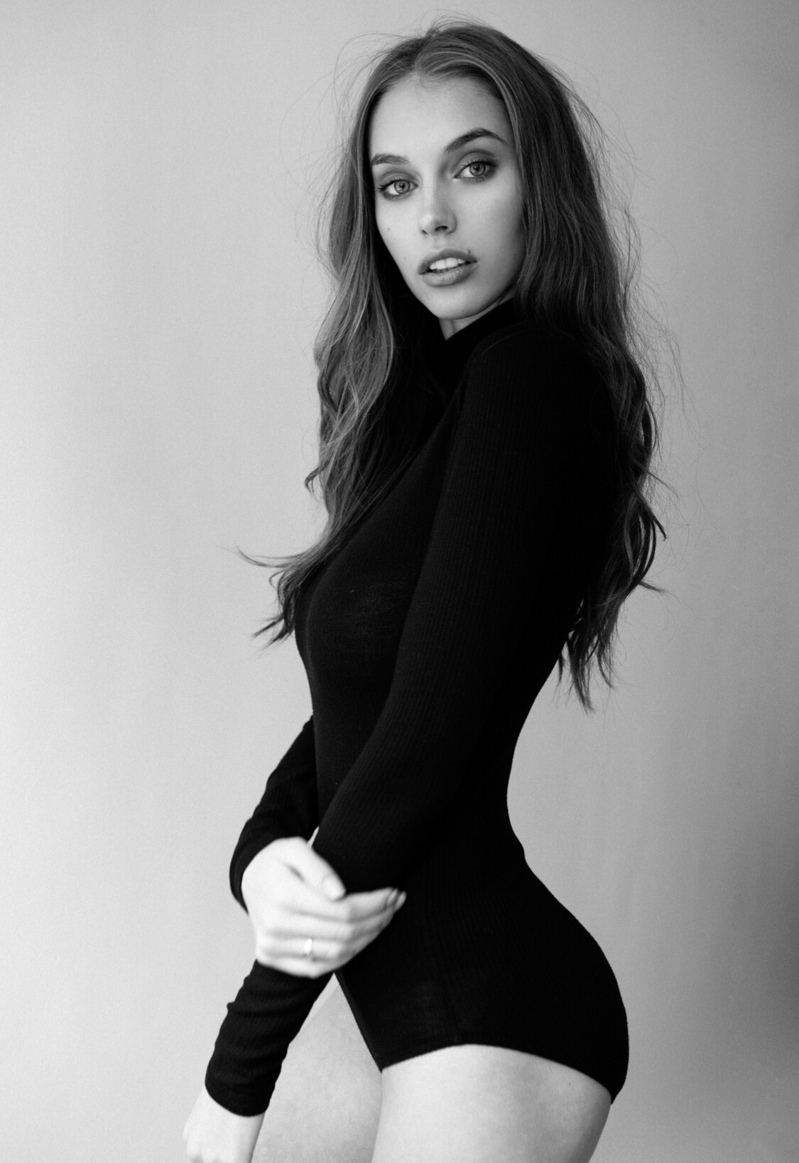 She always gets nice mood in photo. like a movie star in frame