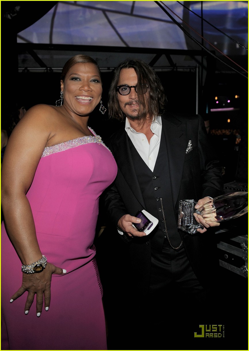 Johnny also posed with host Queen Latifah, who wore a fuchsia crepe one-shoulder Edition by Georges Chakra gown.